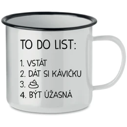 Smaltovaný Plecháček pro Chvíle Pohody - S Úsměvem a Teplem V našem rychlém světě je důležité najít si chvilku klidu a pohody. Naše nová kolekce smaltovaných plecháčků je jako stvořená právě pro tyto momenty. Každý plecháček je vyroben s láskou a pečlivostí, aby doprovázel vaše chvíle odpočinku, ať už si vychutnáváte šálek voňavé kávy, lahodného čaje nebo teplého kakaa. S objemem 350 ml jsou tyto tradiční smaltované hrnky perfektními společníky pro každý den. A co je na nich nejlepší? Každý z nich nese vtipný motiv: TO DO LIST: BÝT ÚŽASNÁ, který rozjasní váš den a přinese úsměv na tvář. Tyto hrnky jsou jako malé pohlazení pro duši - ideální pro chvíle, kdy jste sami sebou, nebo pro ty nezapomenutelné okamžiky strávené s vašimi nejbližšími. Zapomeňte na chvíli na všechny starosti a užijte si klidný moment s naším smaltovaným plecháčkem. Objednejte si jej nyní a připravte se na maximální požitek z každého doušku! Doporučujeme ruční mytí tohoto produktu pro zachování jeho kvality a trvanlivosti. Nedoporučujeme umisťovat do myčky na nádobí.