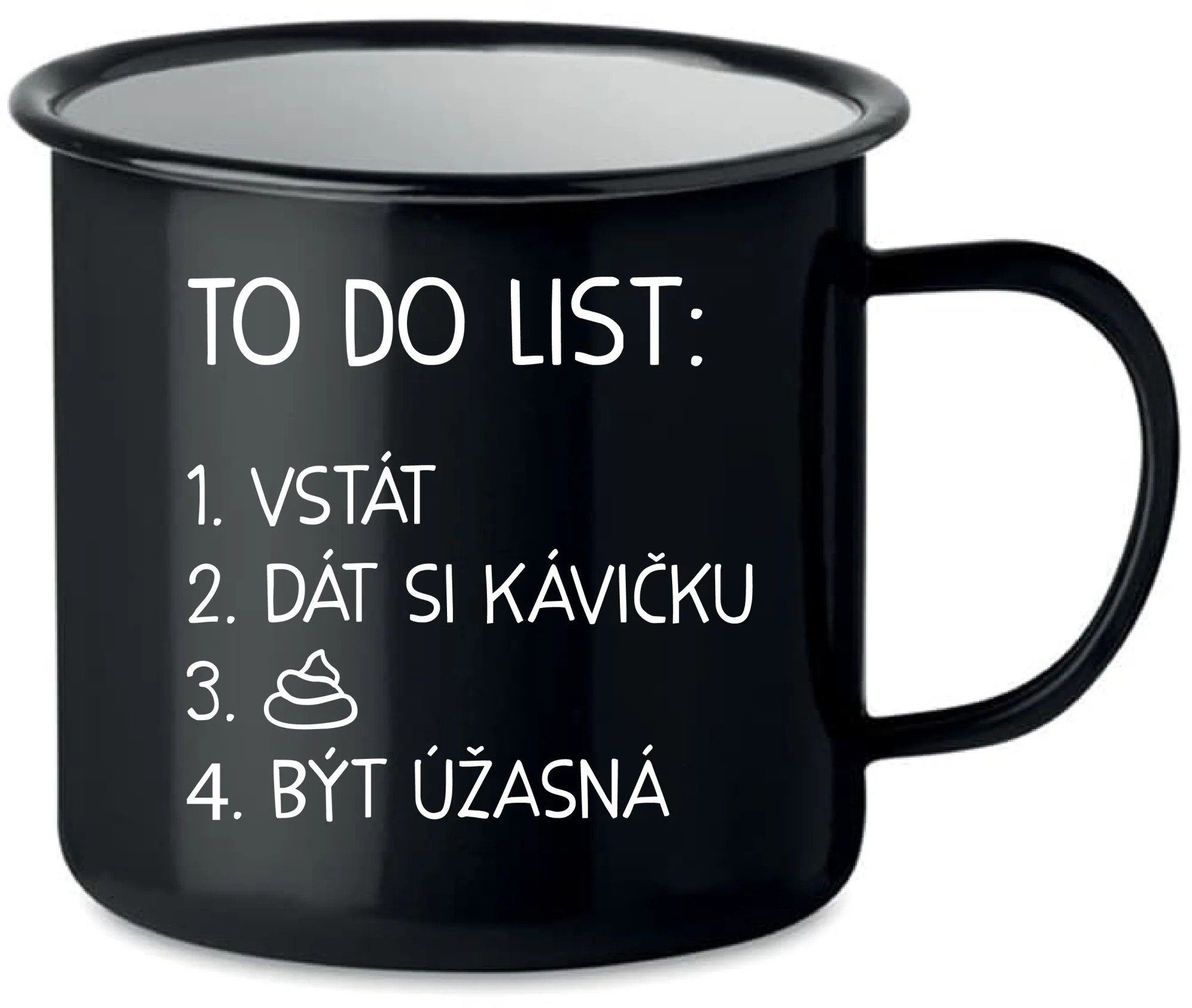 Smaltovaný Plecháček pro Chvíle Pohody - S Úsměvem a Teplem V našem rychlém světě je důležité najít si chvilku klidu a pohody. Naše nová kolekce smaltovaných plecháčků je jako stvořená právě pro tyto momenty. Každý plecháček je vyroben s láskou a pečlivostí, aby doprovázel vaše chvíle odpočinku, ať už si vychutnáváte šálek voňavé kávy, lahodného čaje nebo teplého kakaa. S objemem 350 ml jsou tyto tradiční smaltované hrnky perfektními společníky pro každý den. A co je na nich nejlepší? Každý z nich nese vtipný motiv: TO DO LIST: BÝT ÚŽASNÁ, který rozjasní váš den a přinese úsměv na tvář. Tyto hrnky jsou jako malé pohlazení pro duši - ideální pro chvíle, kdy jste sami sebou, nebo pro ty nezapomenutelné okamžiky strávené s vašimi nejbližšími. Zapomeňte na chvíli na všechny starosti a užijte si klidný moment s naším smaltovaným plecháčkem. Objednejte si jej nyní a připravte se na maximální požitek z každého doušku! Doporučujeme ruční mytí tohoto produktu pro zachování jeho kvality a trvanlivosti. Nedoporučujeme umisťovat do myčky na nádobí.