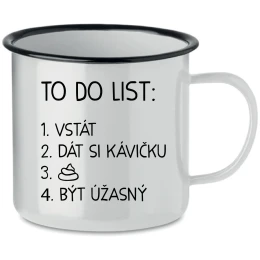 Smaltovaný Plecháček pro Chvíle Pohody - S Úsměvem a Teplem V našem rychlém světě je důležité najít si chvilku klidu a pohody. Naše nová kolekce smaltovaných plecháčků je jako stvořená právě pro tyto momenty. Každý plecháček je vyroben s láskou a pečlivostí, aby doprovázel vaše chvíle odpočinku, ať už si vychutnáváte šálek voňavé kávy, lahodného čaje nebo teplého kakaa. S objemem 350 ml jsou tyto tradiční smaltované hrnky perfektními společníky pro každý den. A co je na nich nejlepší? Každý z nich nese vtipný motiv: TO DO LIST: BÝT ÚŽASNÝ, který rozjasní váš den a přinese úsměv na tvář. Tyto hrnky jsou jako malé pohlazení pro duši - ideální pro chvíle, kdy jste sami sebou, nebo pro ty nezapomenutelné okamžiky strávené s vašimi nejbližšími. Zapomeňte na chvíli na všechny starosti a užijte si klidný moment s naším smaltovaným plecháčkem. Objednejte si jej nyní a připravte se na maximální požitek z každého doušku! Doporučujeme ruční mytí tohoto produktu pro zachování jeho kvality a trvanlivosti. Nedoporučujeme umisťovat do myčky na nádobí.