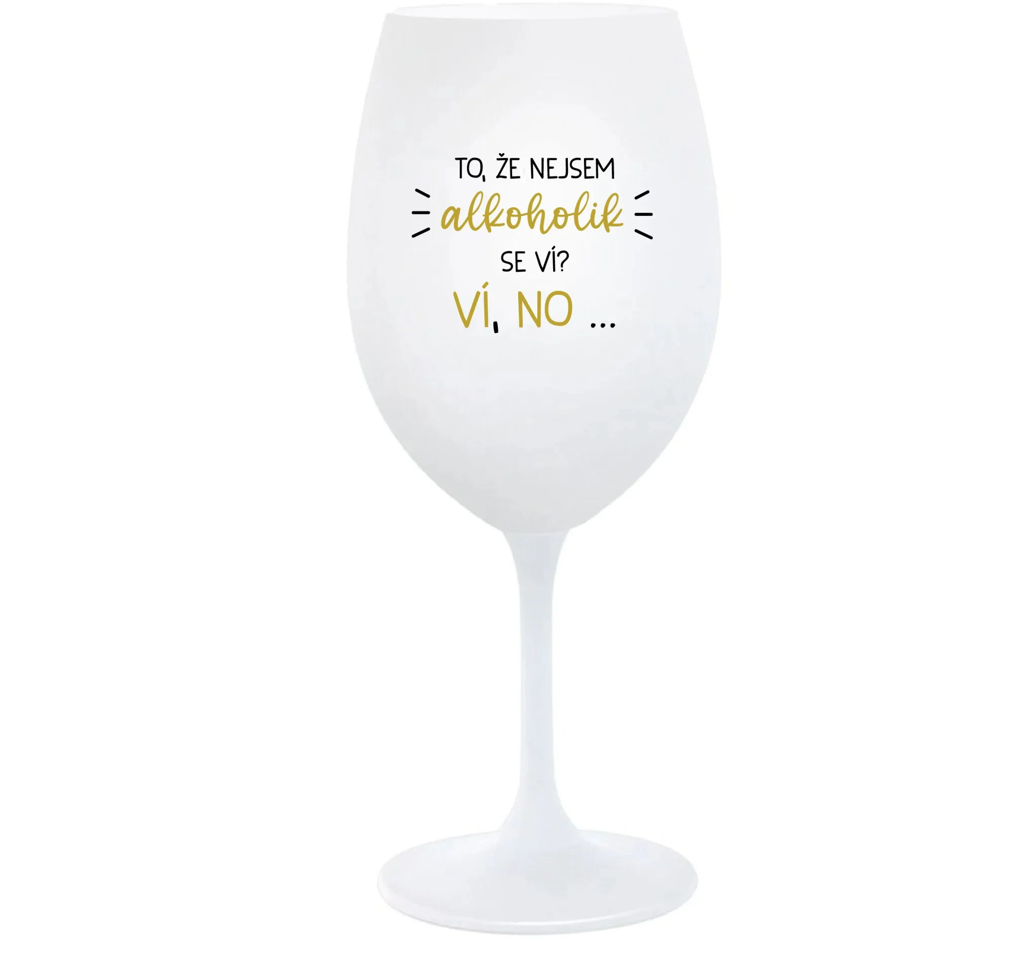 TO, ŽE NEJSEM ALKOHOLIK SE VÍ? VÍ, NO... - bílá sklenice na víno 350 ml