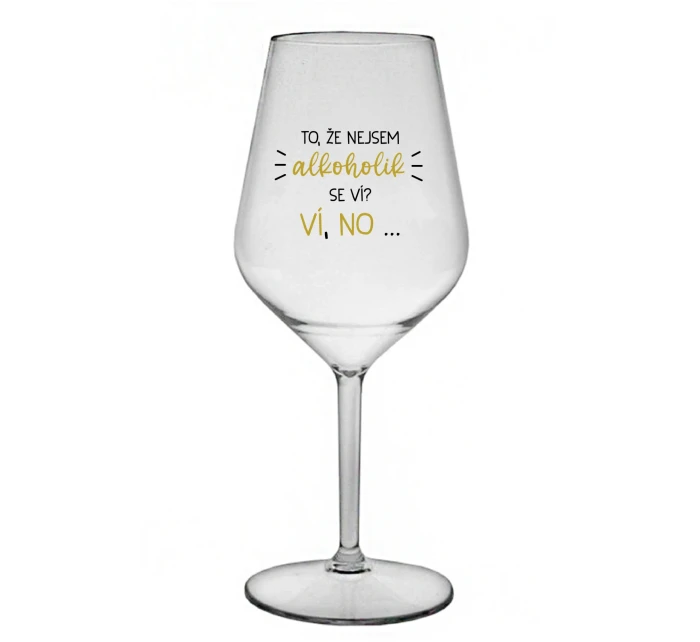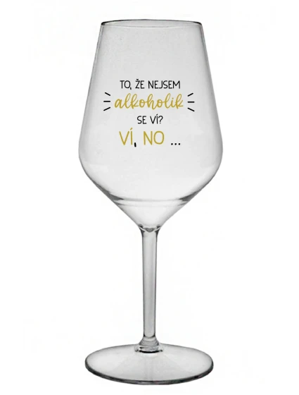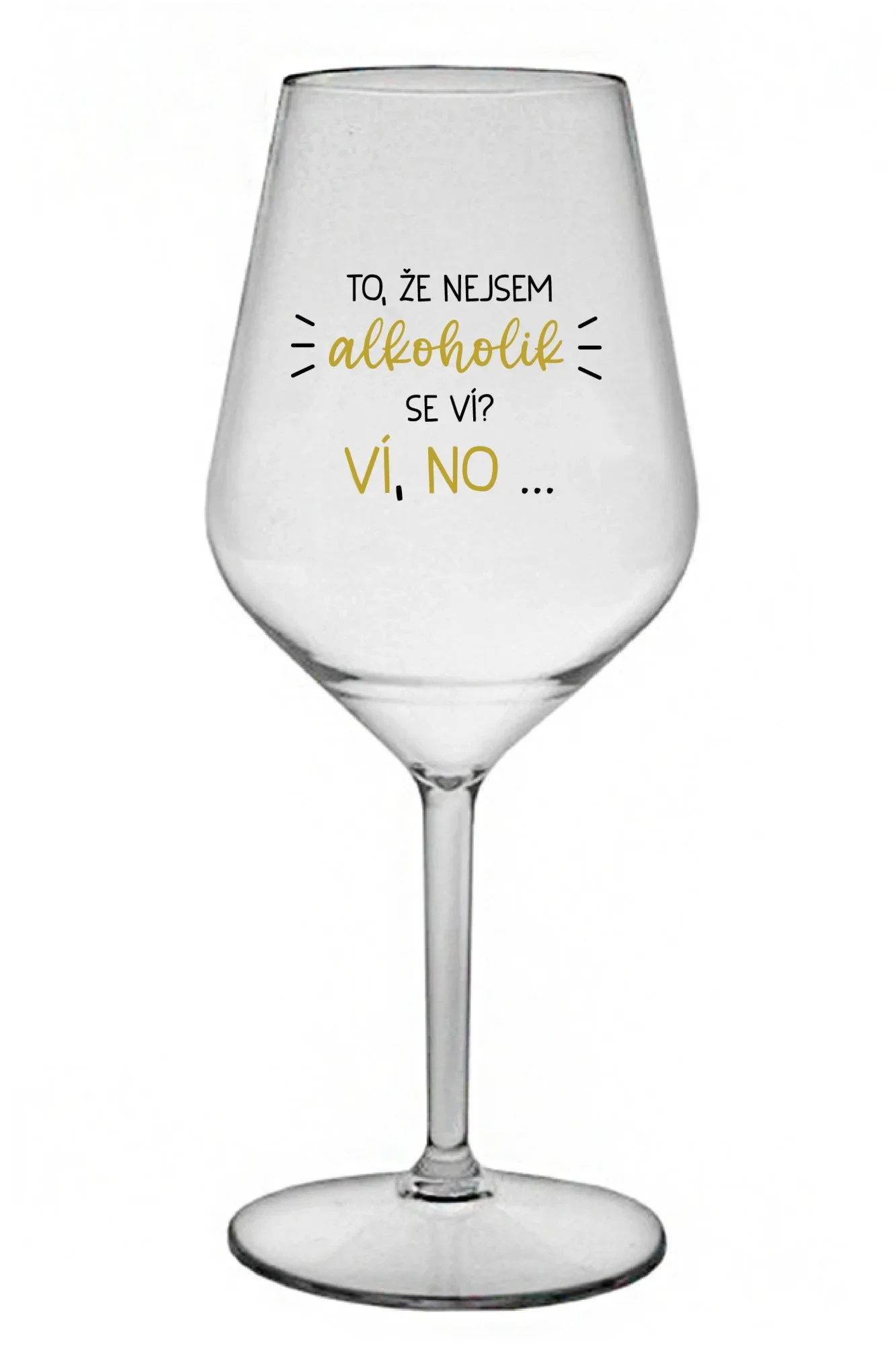 TO, ŽE NEJSEM ALKOHOLIK SE VÍ? VÍ, NO... - čirá nerozbitná sklenice na víno 470 ml
