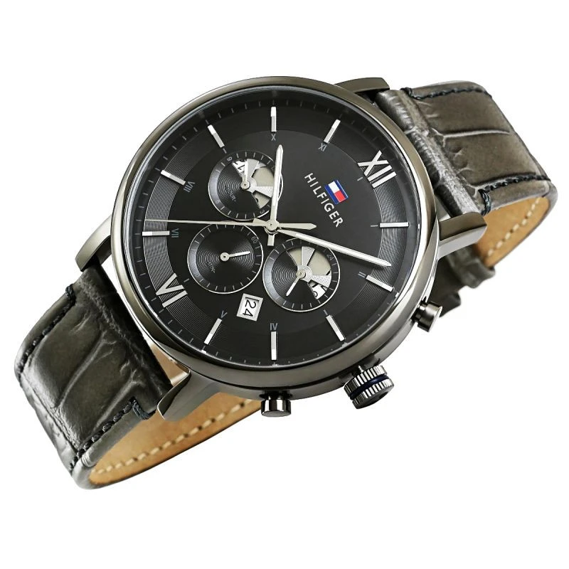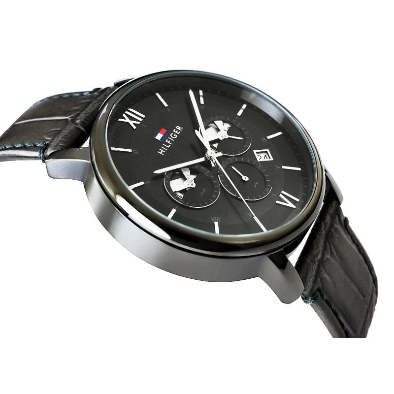 Pánské hodinky Tommy Hilfiger Evan 1710395 jsou vybaveny funkčními chronografy: 12/24hodinové zobrazení času pro celý den pro rozlišení ranních a odpoledních hodin, dvě časová pásma - současné měření času ve dvou různých časových pásmech a datumovka dnů v měsíci