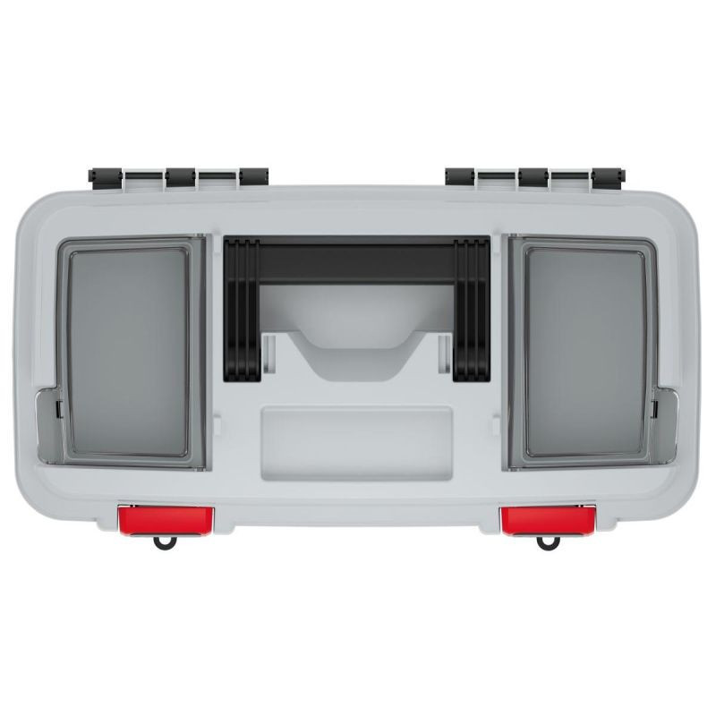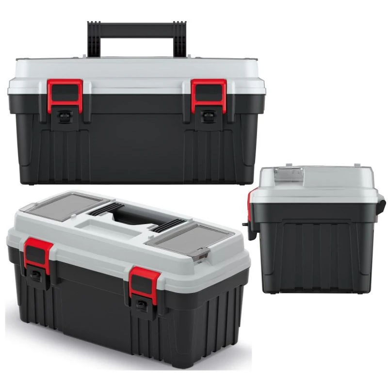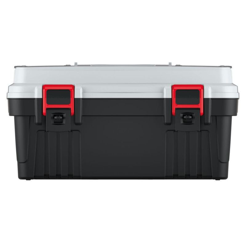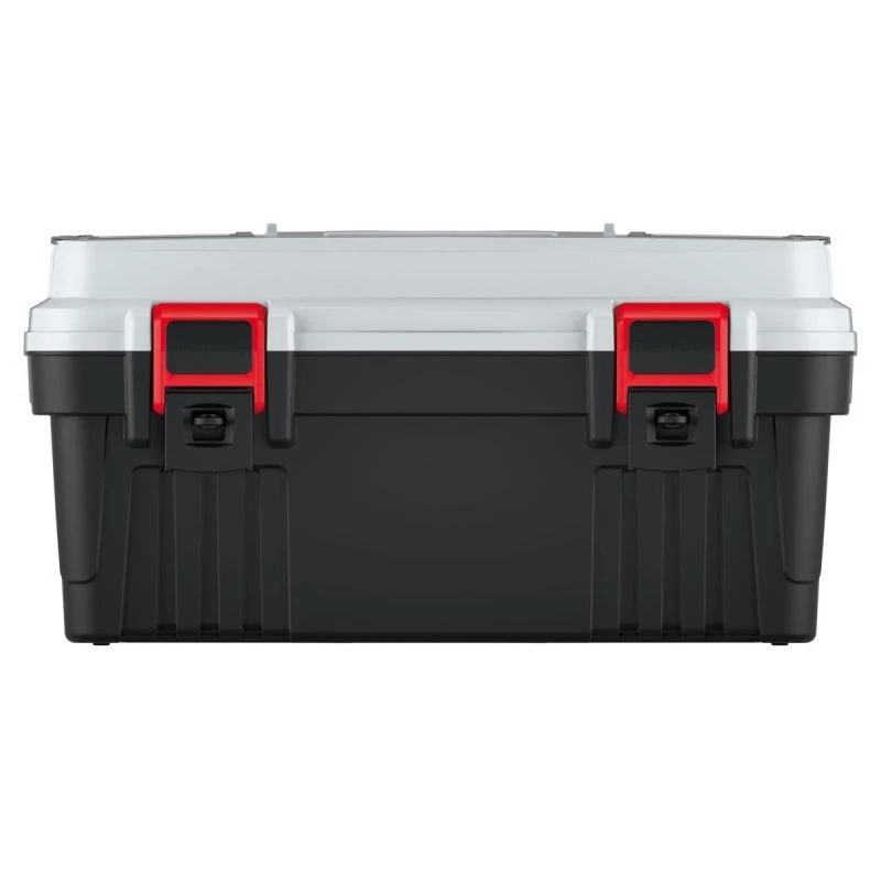 Box na nářadí je vybaven speciálním nosičem nářadí a dvěma organizéry s průhlednými víky z odolného polykarbonátu, které navíc zajišťují pořádek a přehlednost a udržují nejdůležitější nářadí na jednom místě.