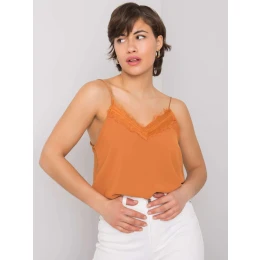 RUE PARIS Hnědý top s krajkou.