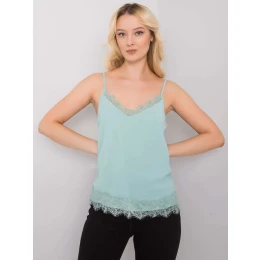 Top v mátové barvě s krajkou.