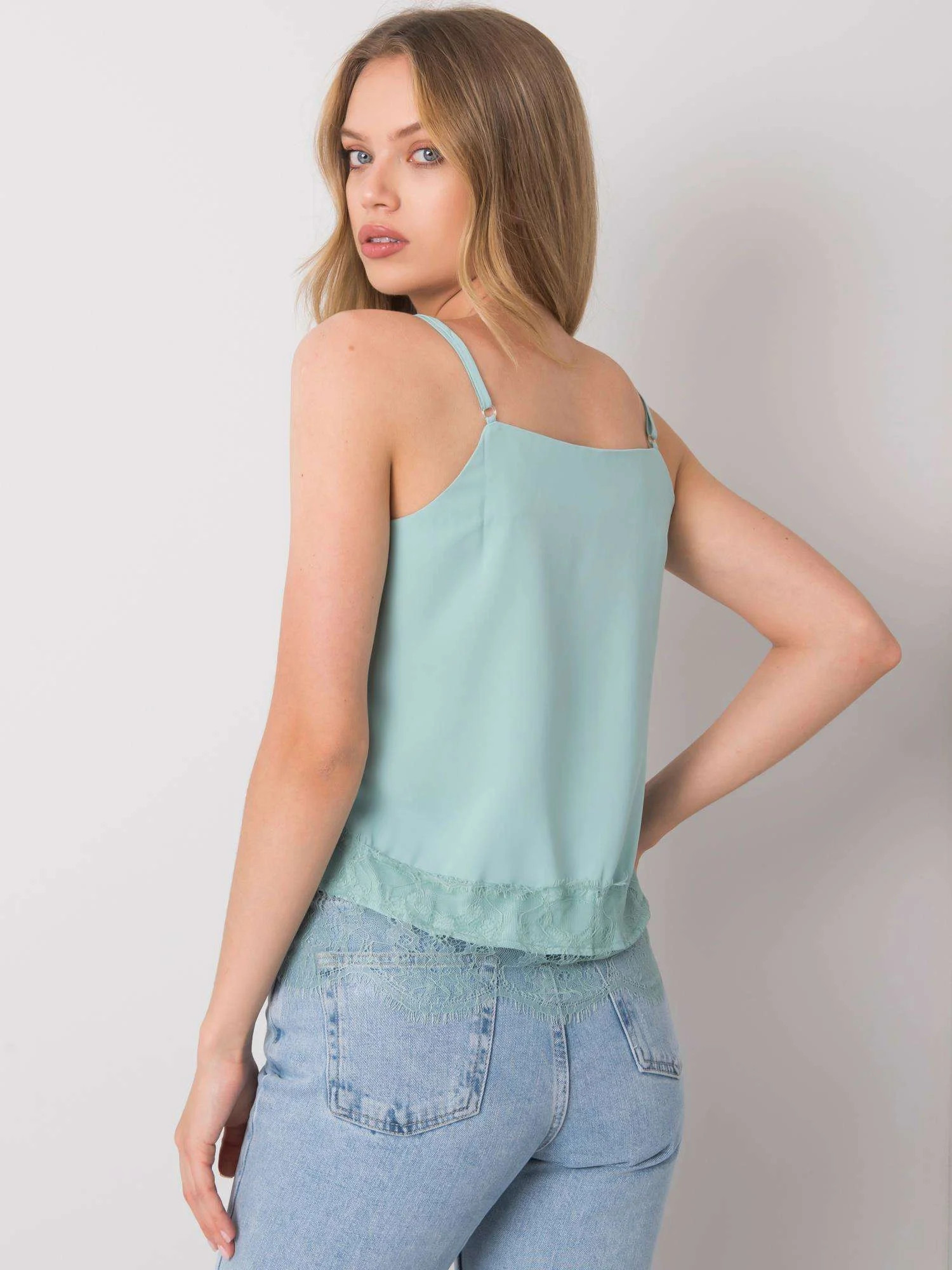 Mátově zbarvený top s knoflíky.