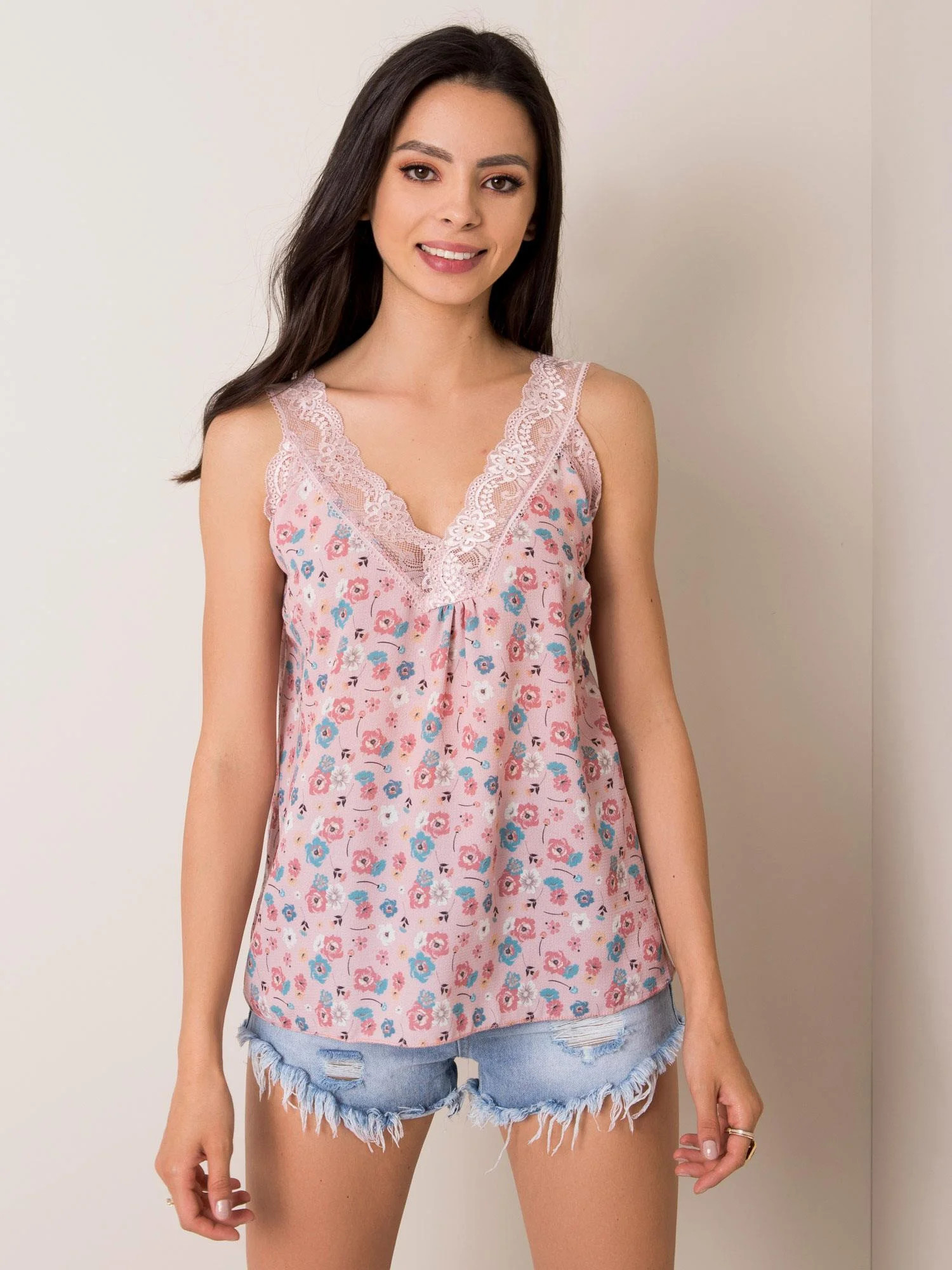 SUBLEVEL Špinavě růžový květovaný top.