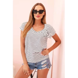 Tento dámský pruhovaný bavlněný top je klasický a univerzální návrh pro každodenní stylizace. Vyroben z elastického materiálu s vysokým obsahem bavlny, zajišťuje pohodlí a volnost pohybu po celý den. Výstřih ve tvaru V jemně zvýrazňuje krk, a nadčasový pruhovaný vzor dodává celku lehkost a módní charakter.