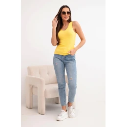 Top dámský bavlněný na ramínkách s výstřihem do V žlutá