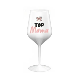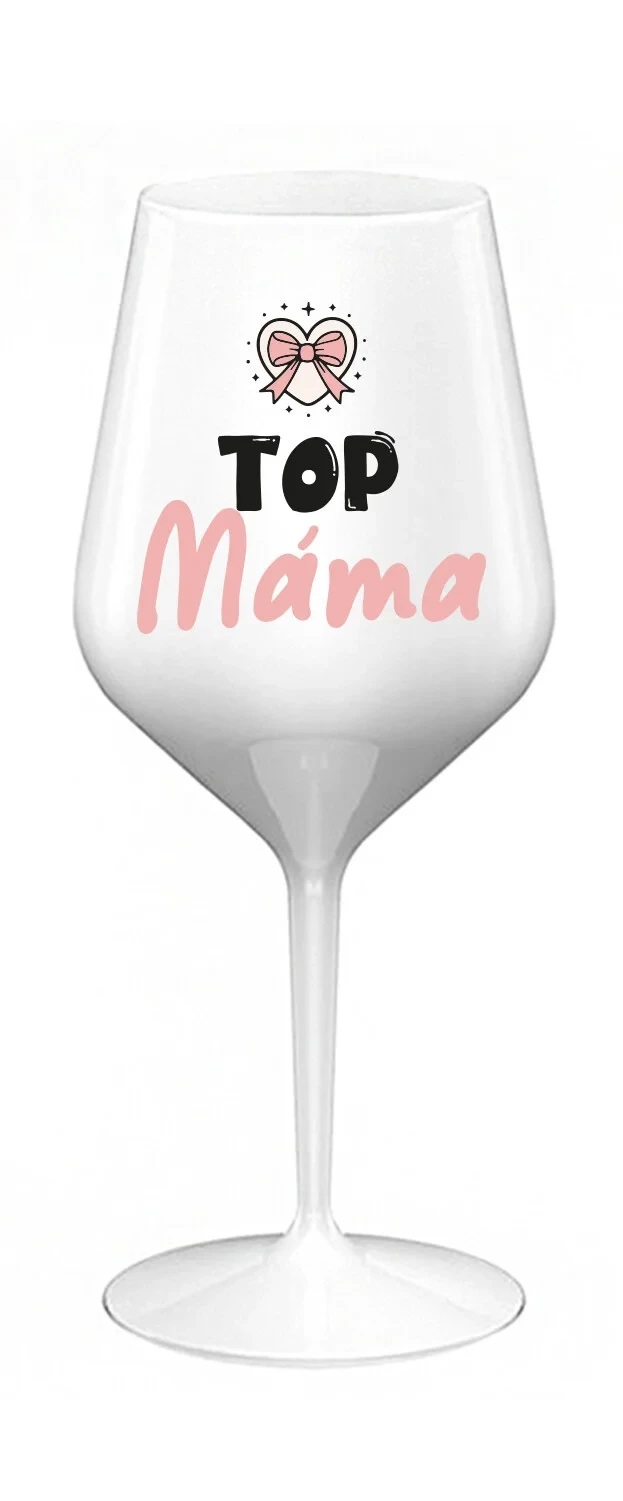 TOP MÁMA - bílá nerozbitná sklenice na víno 470 ml