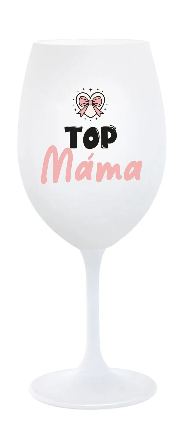 TOP MÁMA - bílá sklenice na víno 350 ml