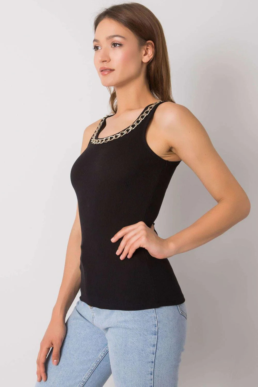 Volné tričko s tenkými nastavitelnými ramínky a výstřihem do V.