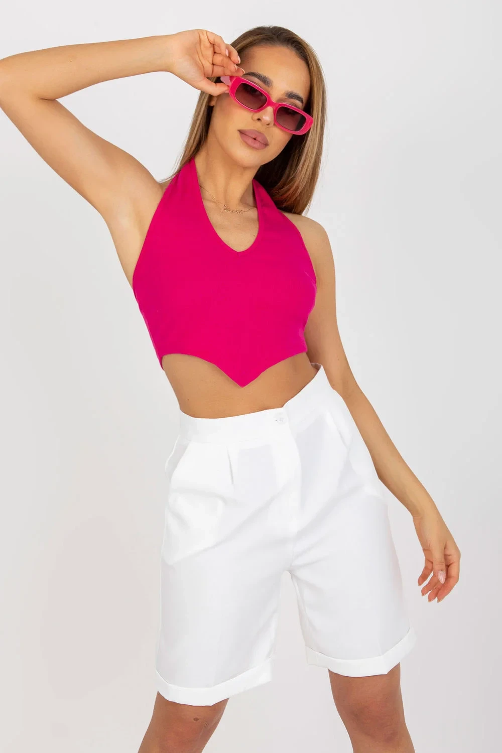 Krátký top z žebrované látky, zastrčený přes hlavu. Ideální na léto.