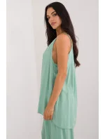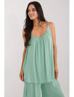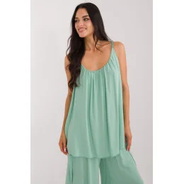 Ležérní dámská halenka ideální pro každodenní nošení, vyrobená z hladké tkaniny, jejíž dominantní složkou je viskóza. Poskytuje pohodlí a prodyšnost, ideální pro teplejší dny. Halenka má standardní délku a je bez ramínek, což jí dodává lehkost a letní pocit. Má kulatý výstřih, který decentně odhaluje krk. Řasení ve výstřihu dodává halence eleganci a jemný půvab. Kromě toho je halenka vybavena podšívkou pro větší pohodlí a lepší padnutí. Je ideální pro každodenní stylizaci, kombinuje styl s pohodlím.