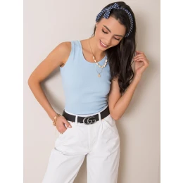 Světle modrý žebrovaný top.