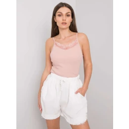 Špinavě růžový top s krajkou.