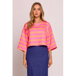 50% bavlna 50% polyester INFORMACE O PRODUKTU: pletenina s potiskem nadměrná velikost crop top tříčtvrteční rukávy bateau výstřih naše modelka je vysoká 171 cm a nosí velikost S navrženo a vyrobeno v Polsku