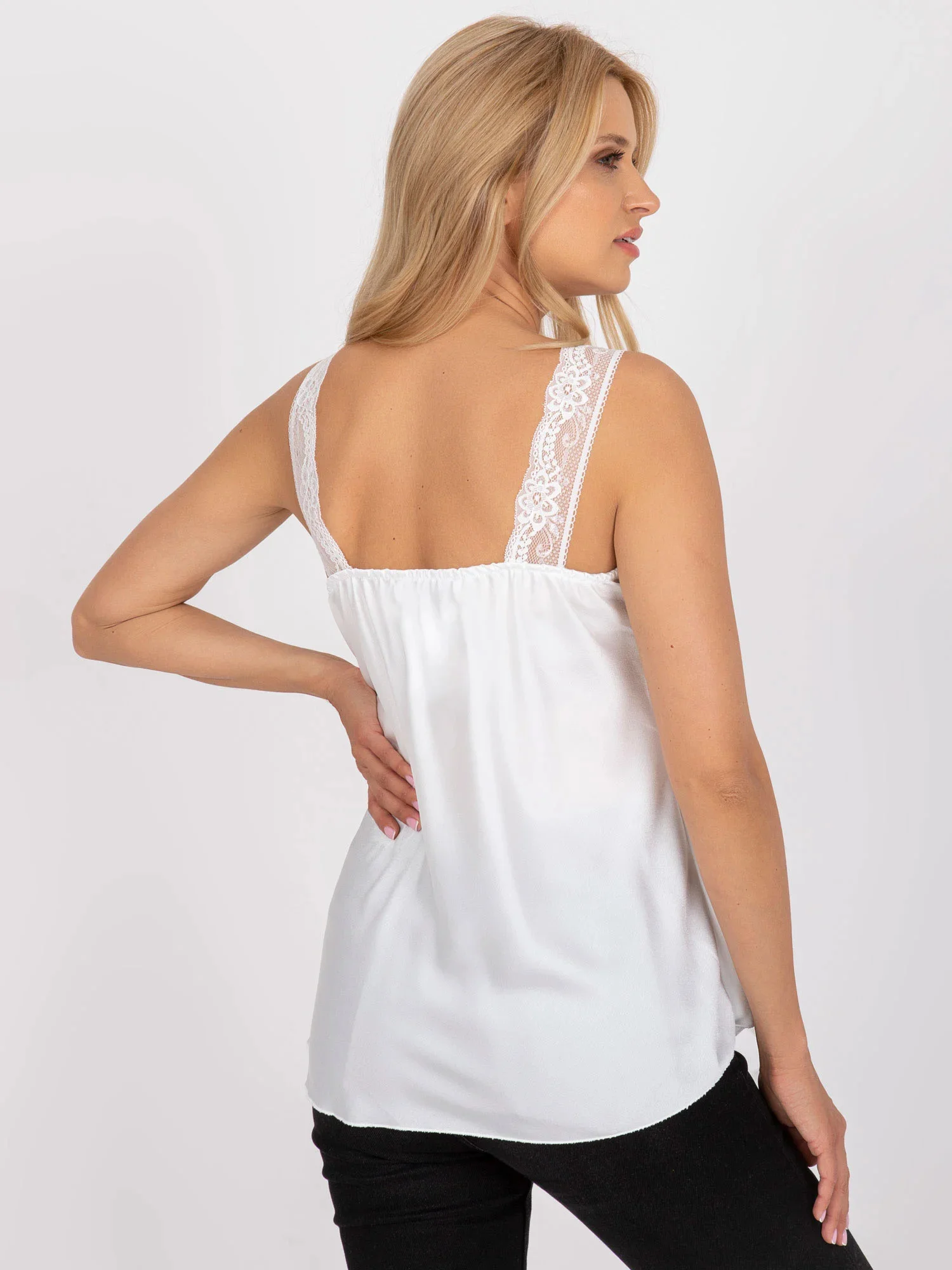 Rozměry topu v jedné velikosti měřené naplocho: šířka v podpaží - 37 cm, celková délka - 65 cm.