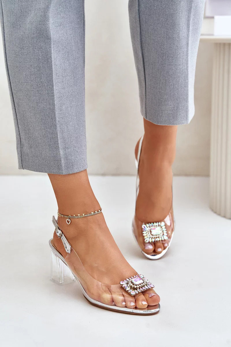 Transparentní Sandály S Broží Na Podpatku D&A Stříbrné