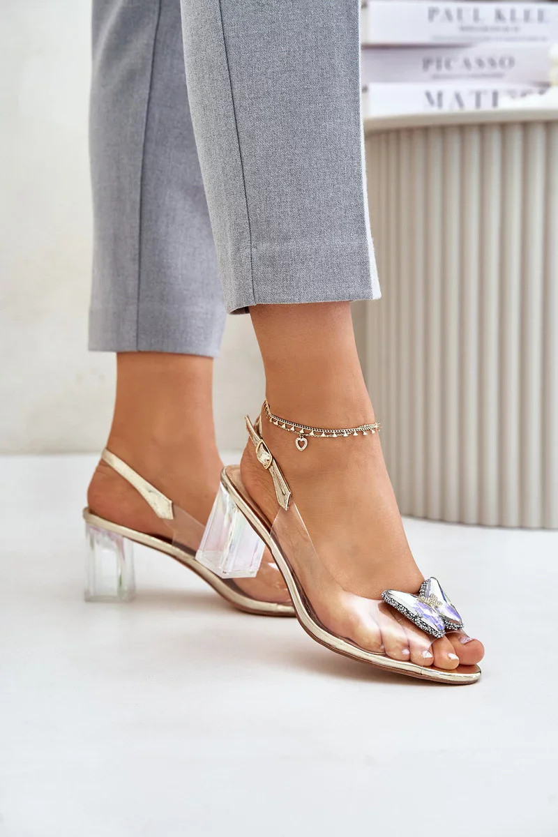 Transparentní Sandály S Motýlem Na Podpatku D&A Zlaté