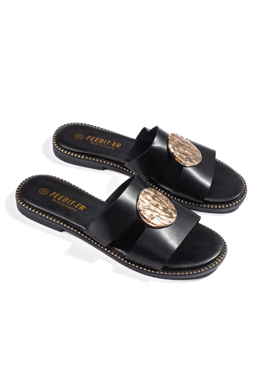 Přidání recenze k Trendy černé dámské nazouváky na plochém podpatku