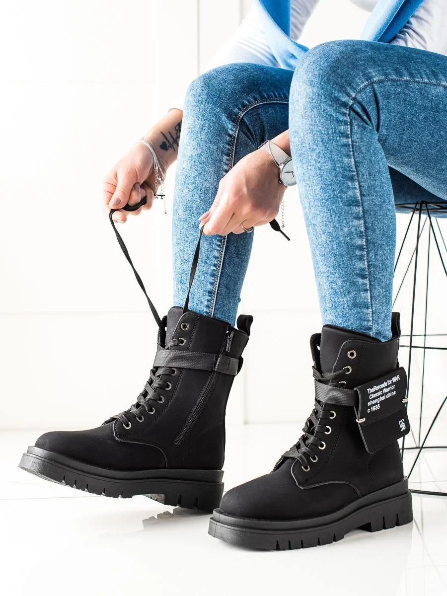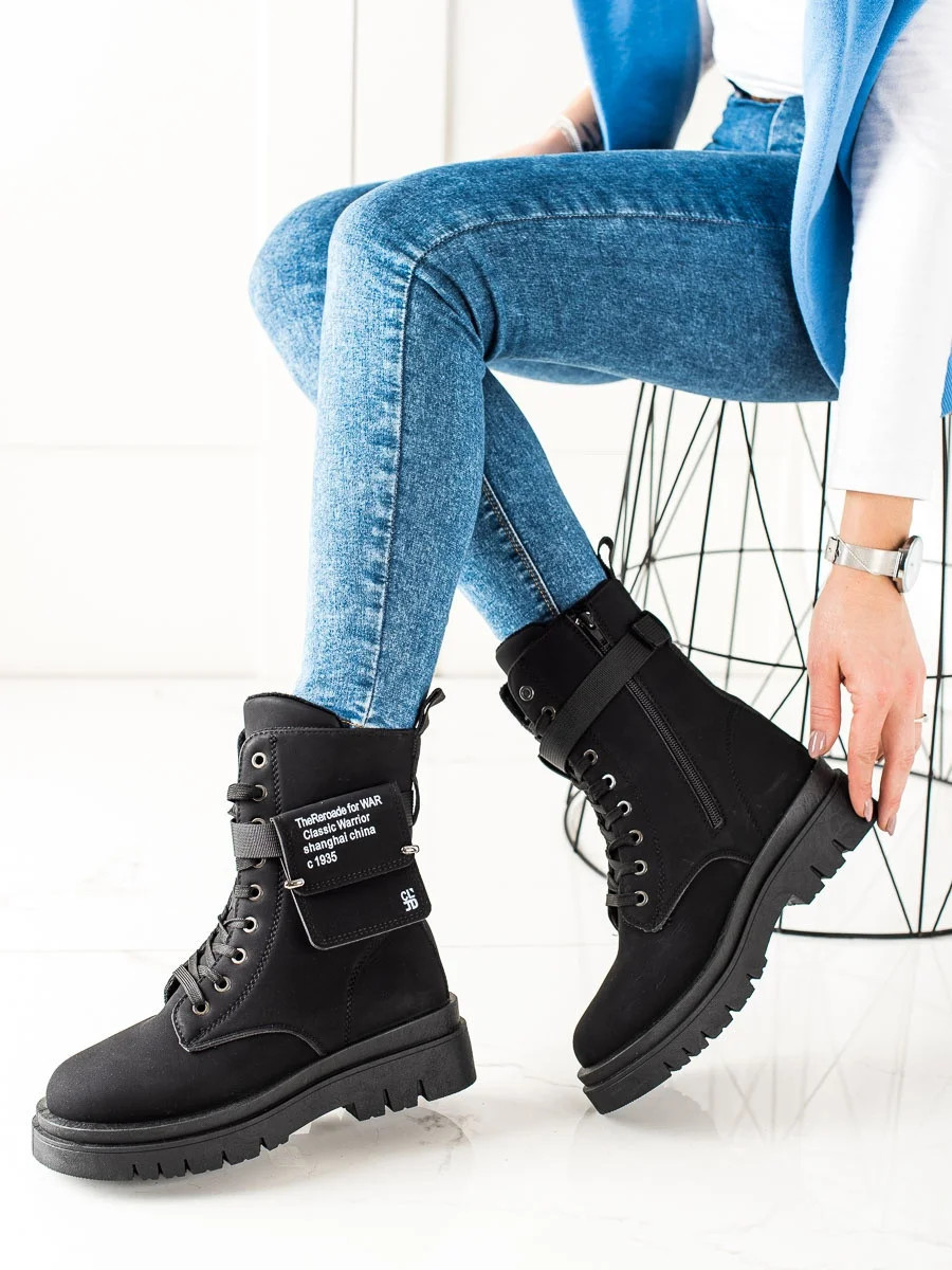 Trendy černé kotníčkové boty dámské na plochém podpatku