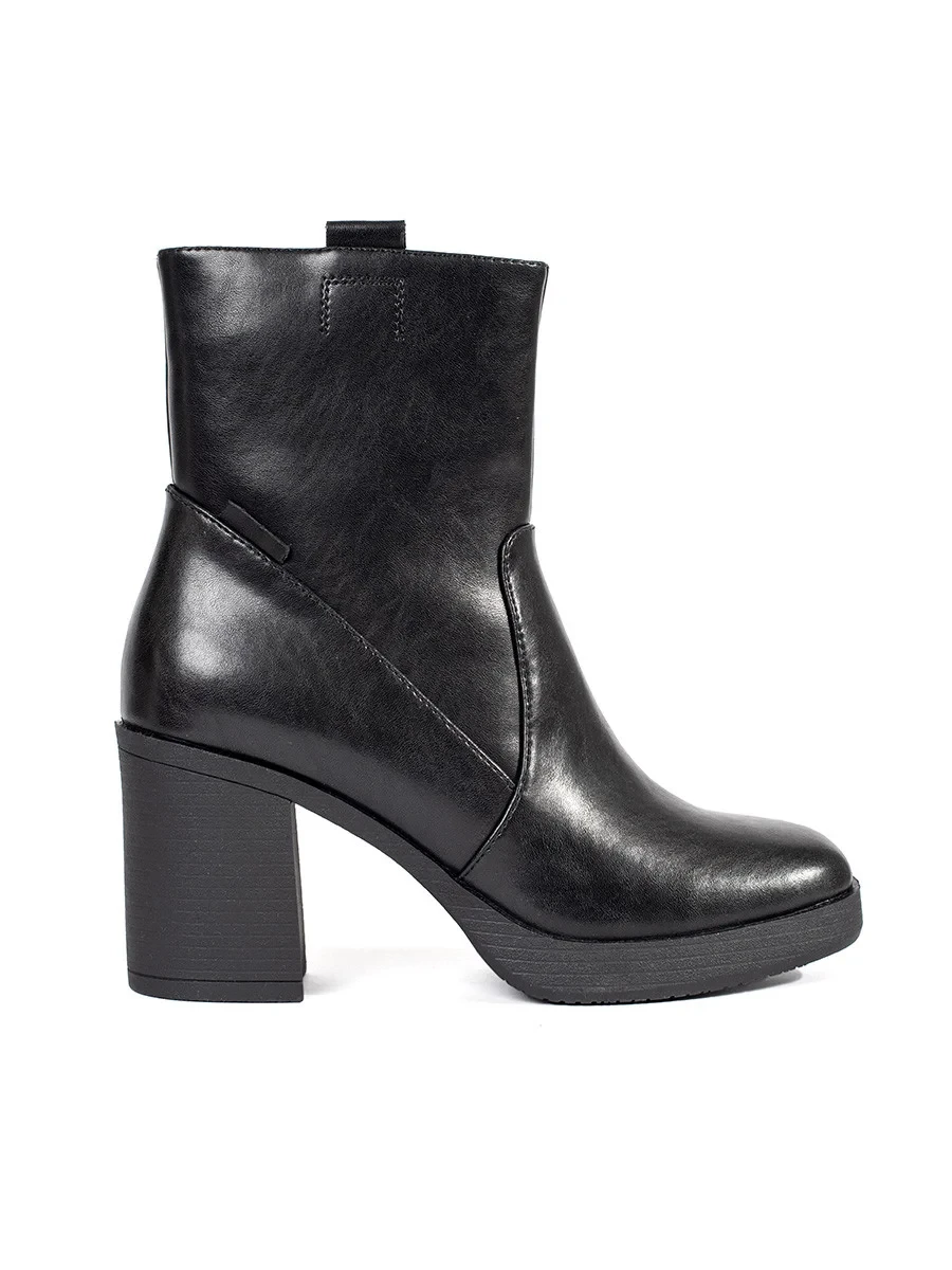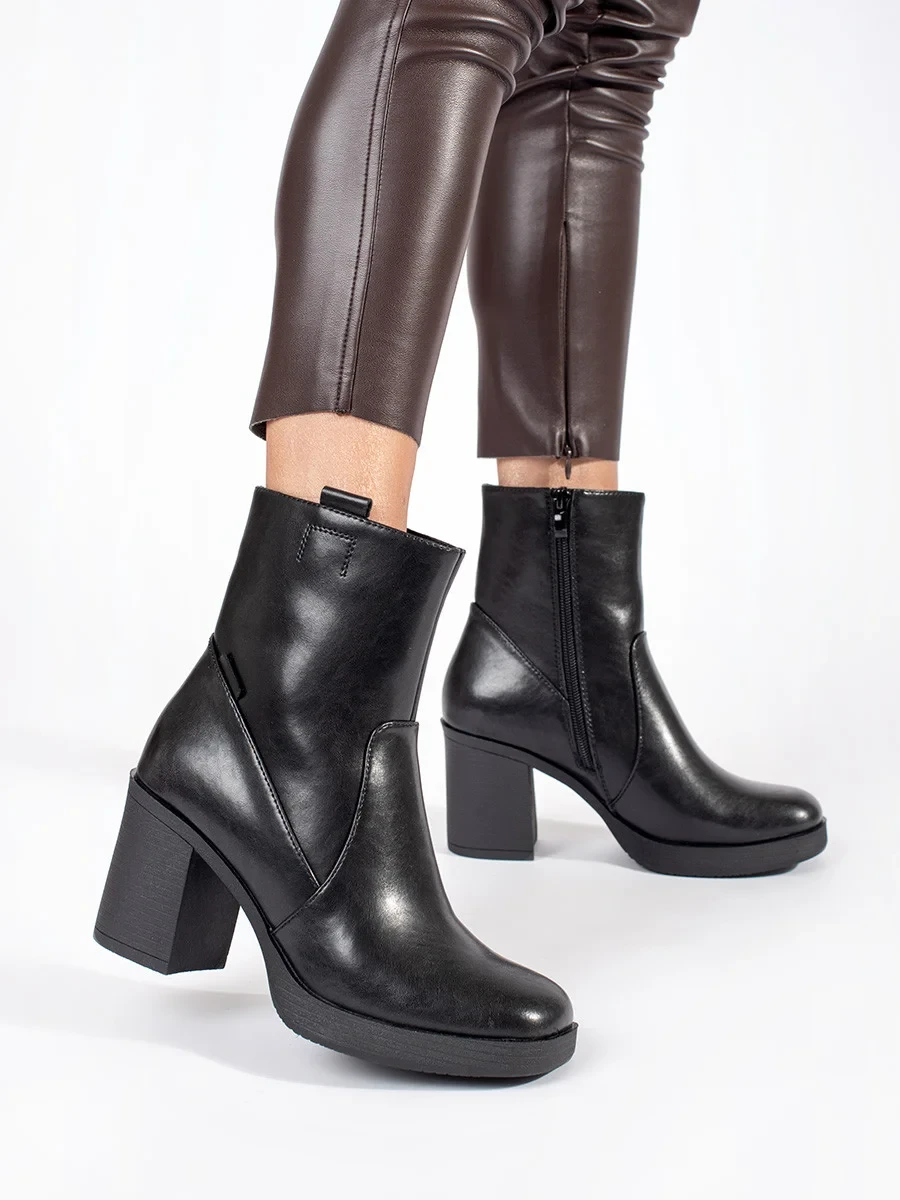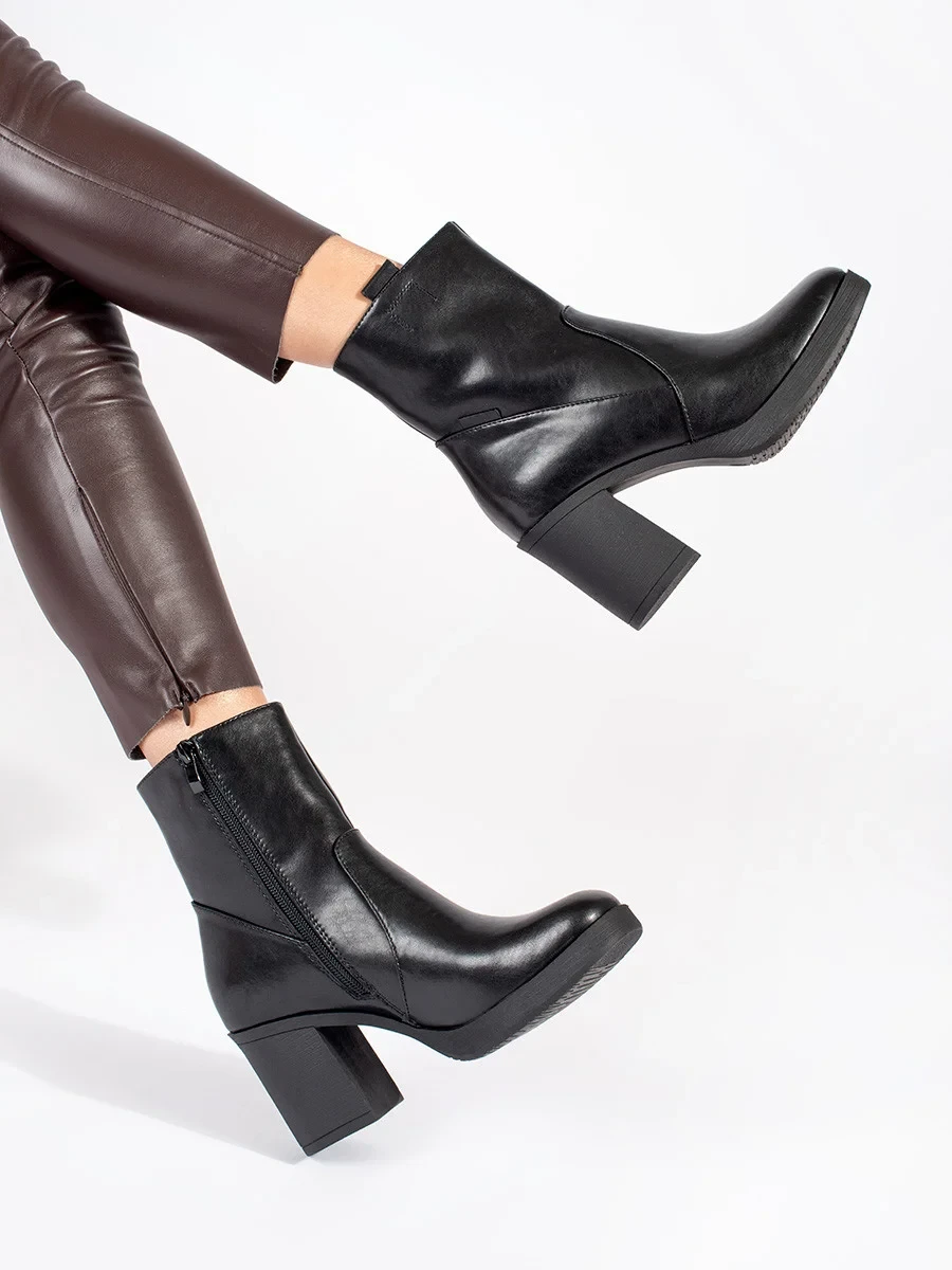 Trendy černé kotníčkové boty dámské na širokém podpatku