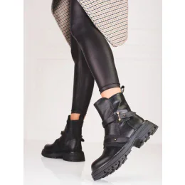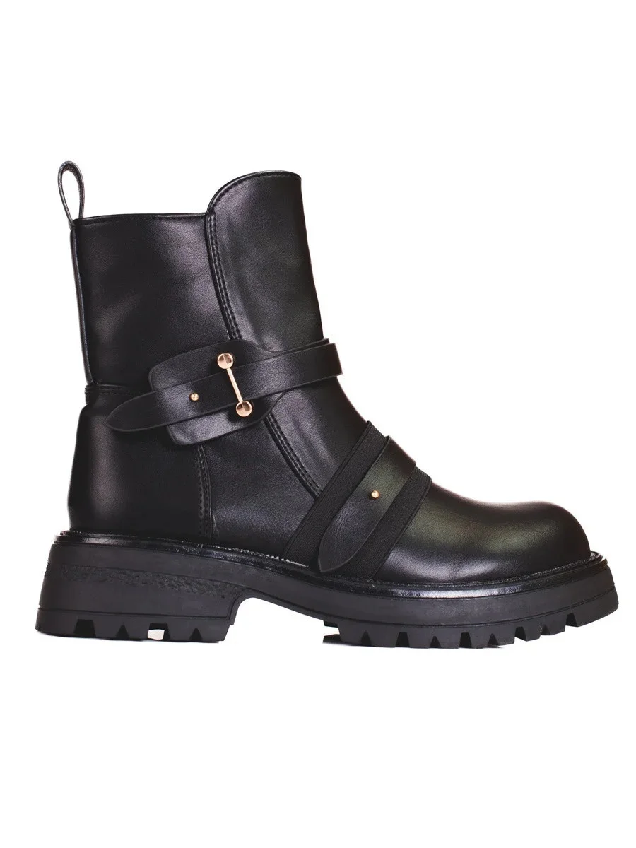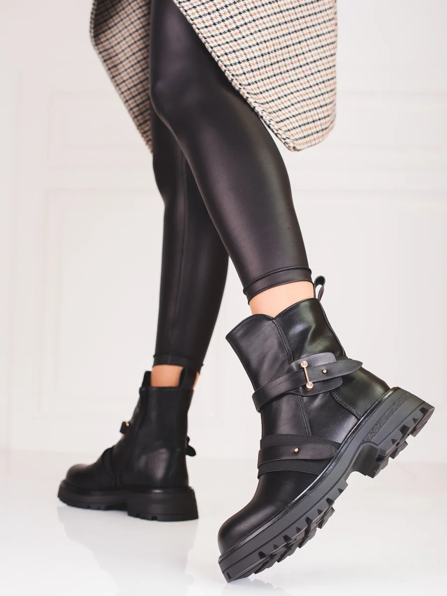 Trendy dámské černé kotníčkové boty na plochém podpatku