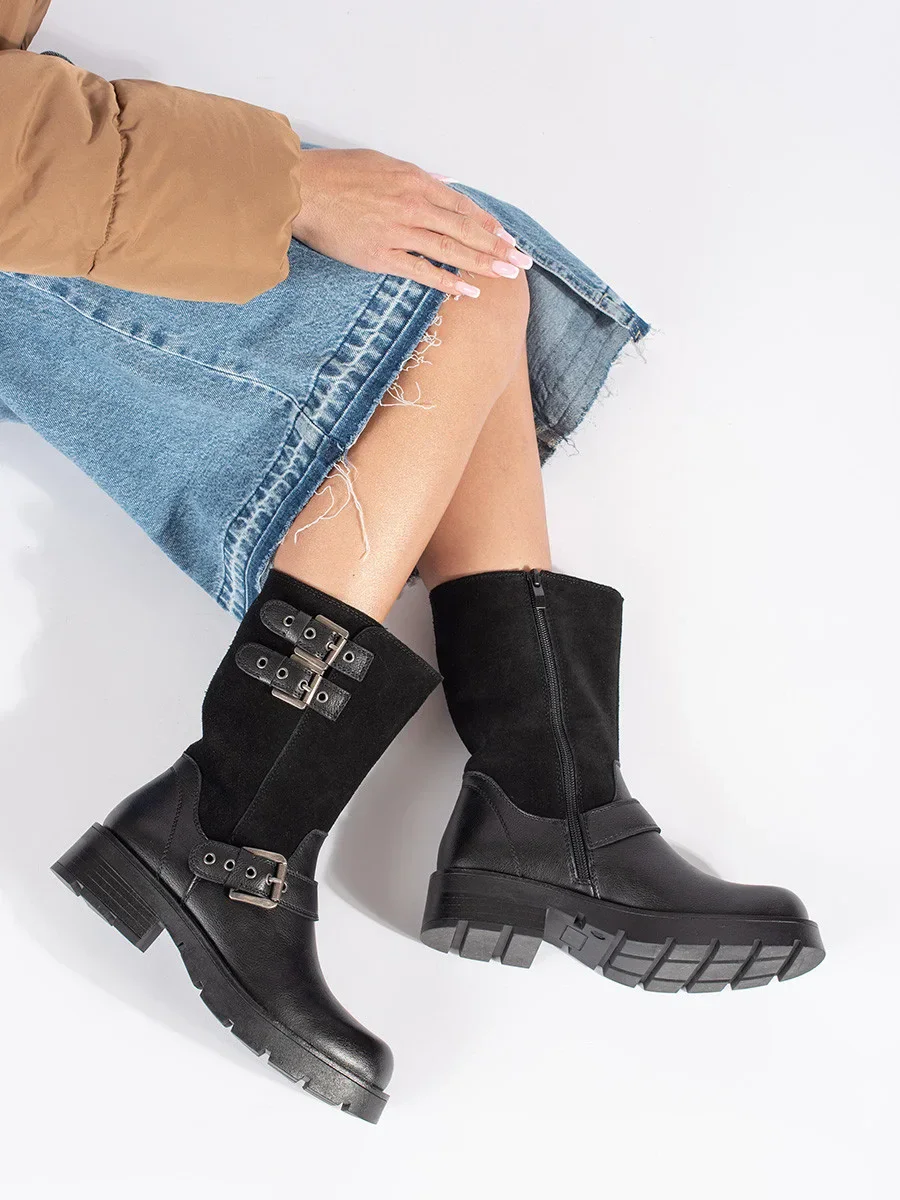 Přidání recenze k Trendy dámské černé kotníčkové boty platforma