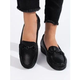 Trendy dámské černé mokasíny bez podpatku