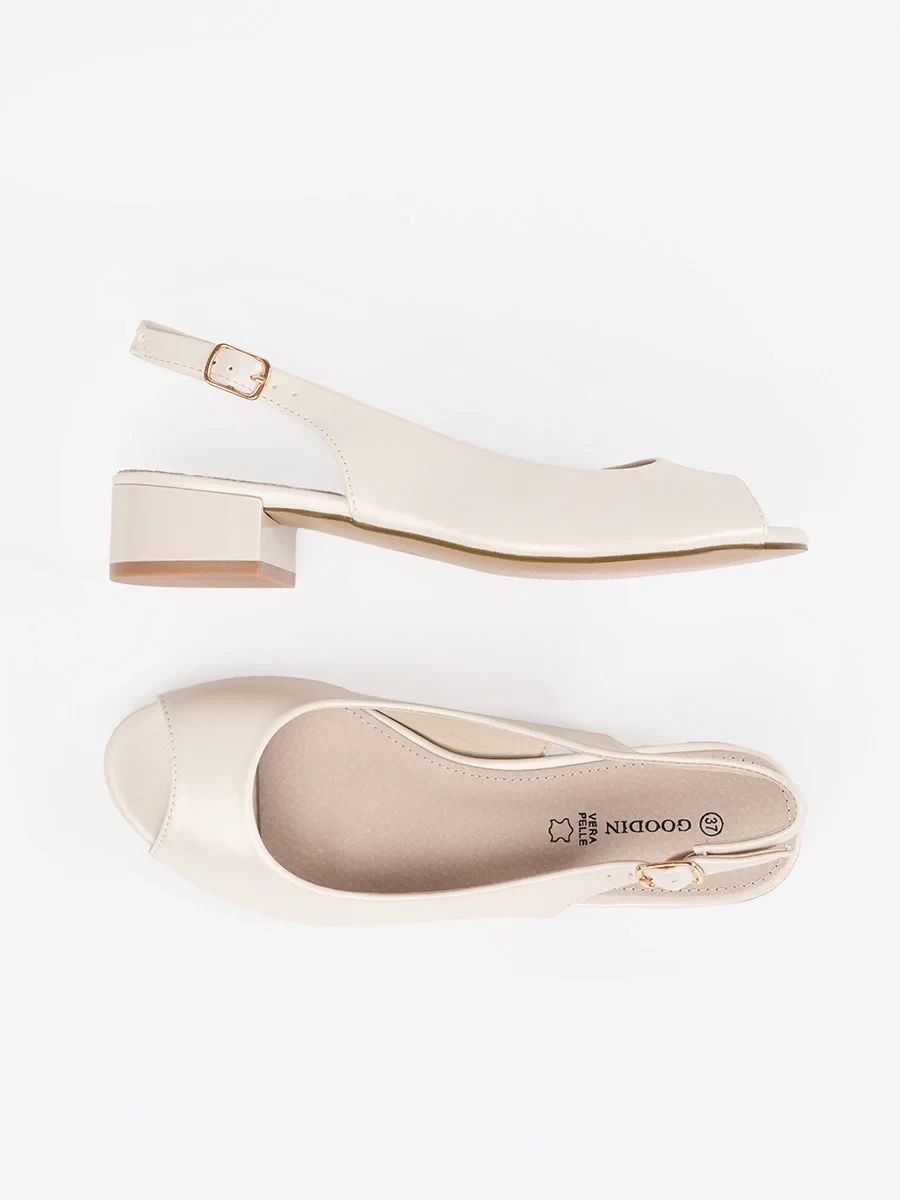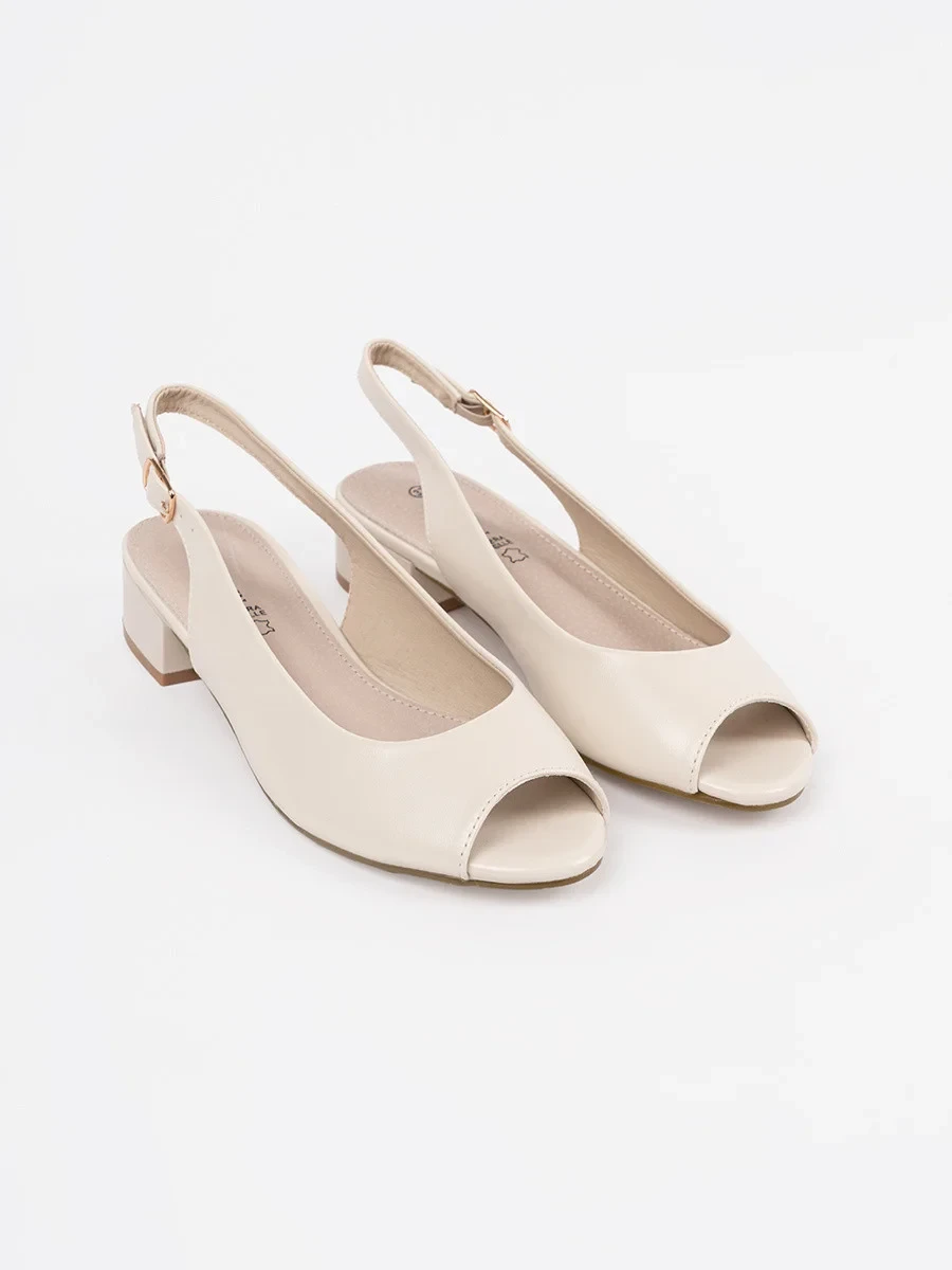 Trendy dámské Jasnobeżowy sandály na širokém podpatku