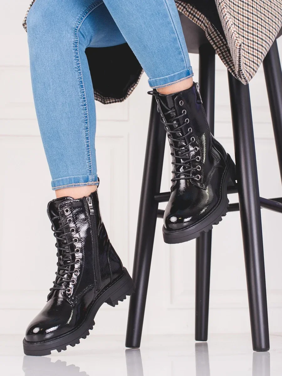 Dámské kotníčkové boty na plochém podpatku KK274539 Bílá s černou - BIG STAR