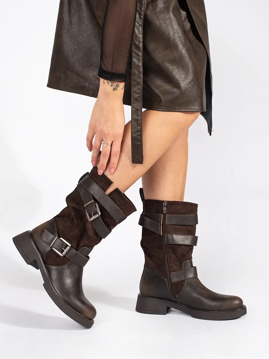 Trendy dámské kotníčkové boty hnědé na širokém podpatku