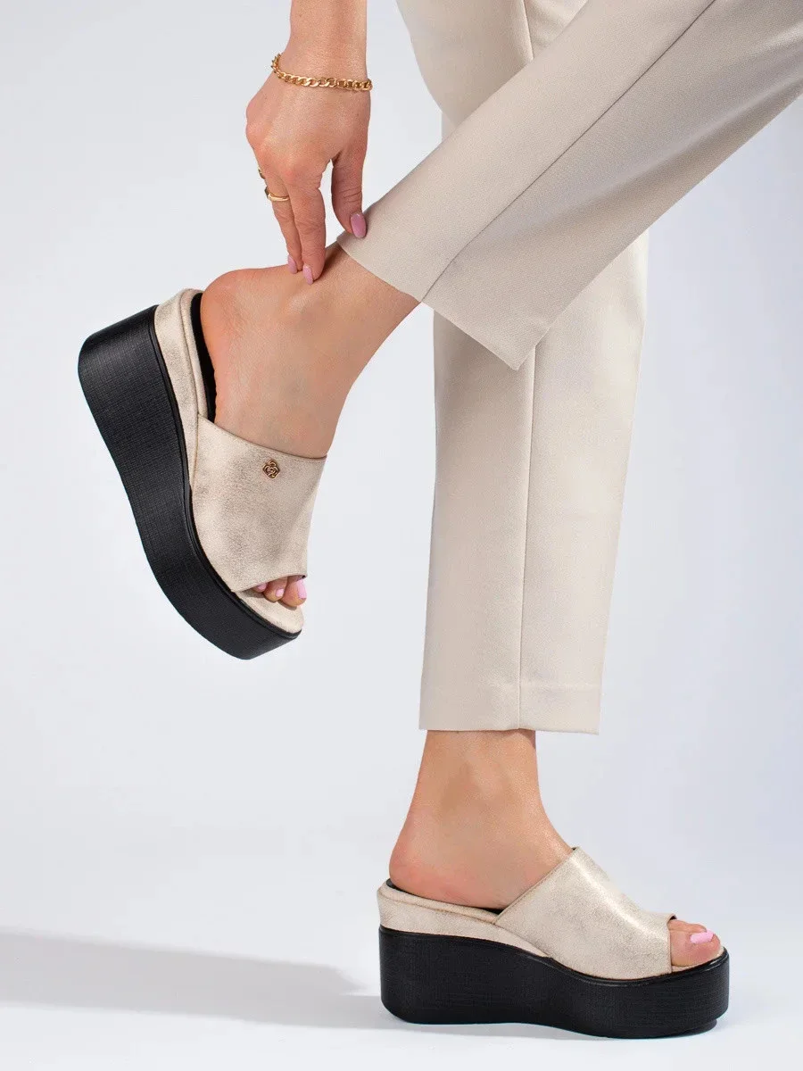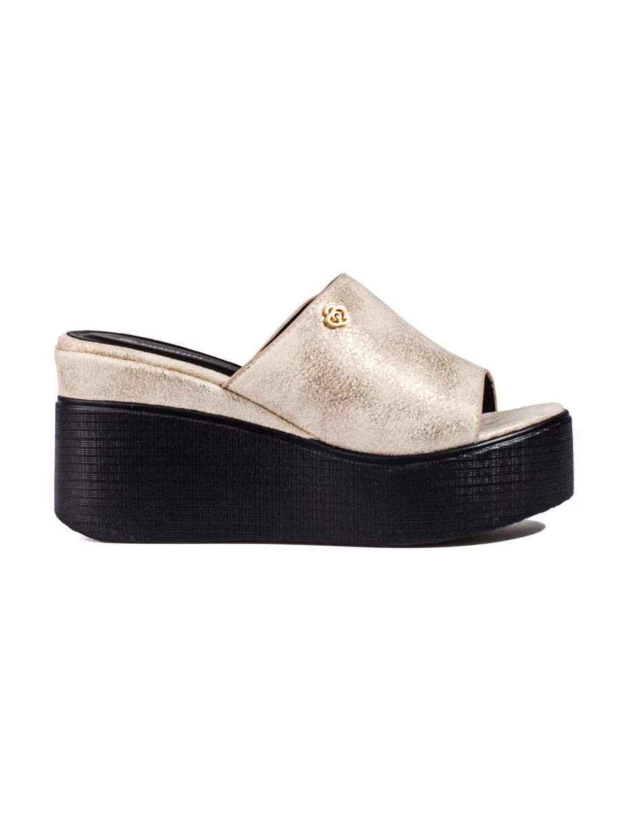 Trendy dámské nazouváky na klínku GD-FL1601 zlato-černé - Goodin
