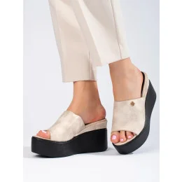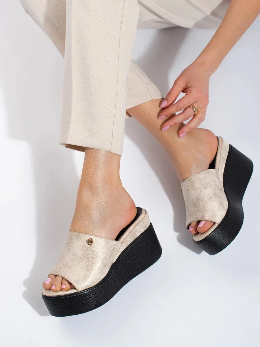Přidání recenze k Trendy dámské nazouváky na klínku GD-FL1601 zlato-černé - Goodin