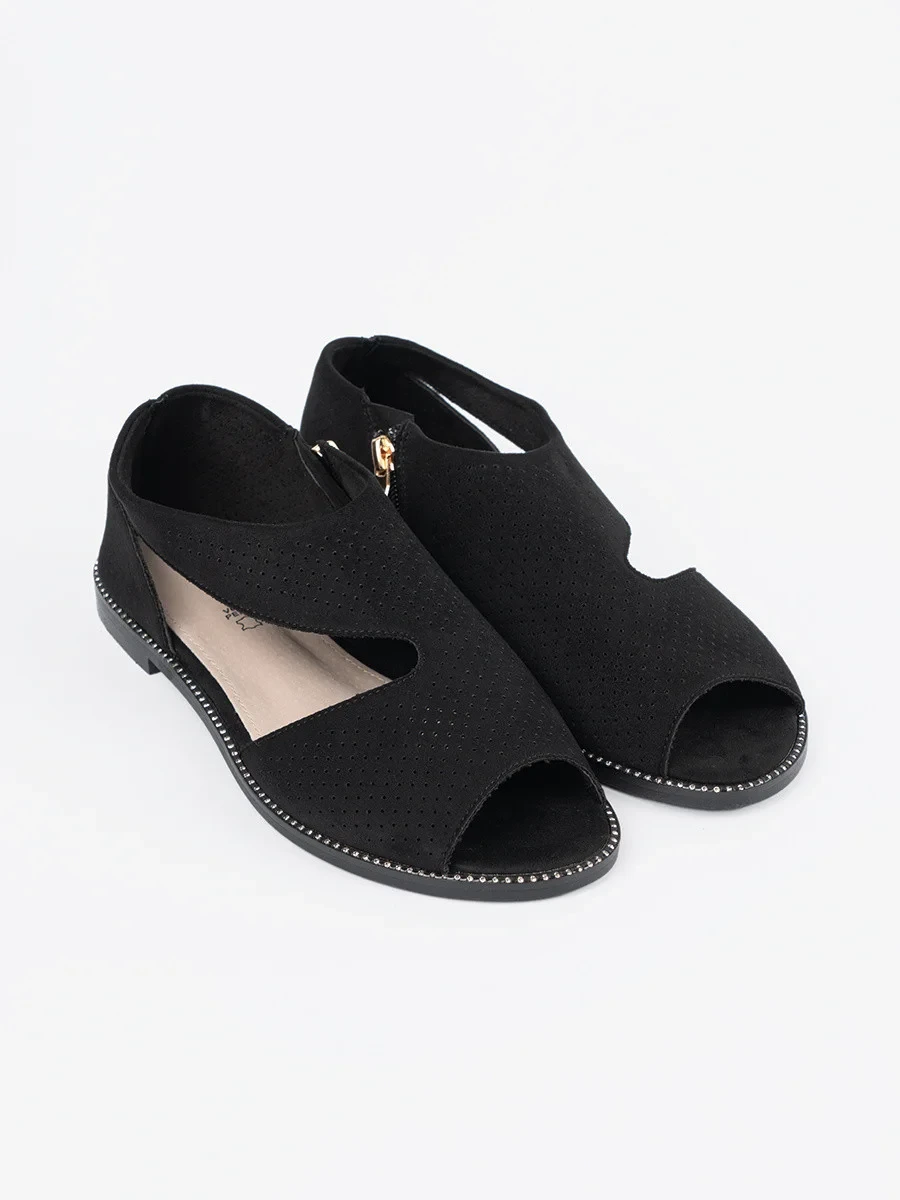 Trendy dámské sandály černé na plochém podpatku