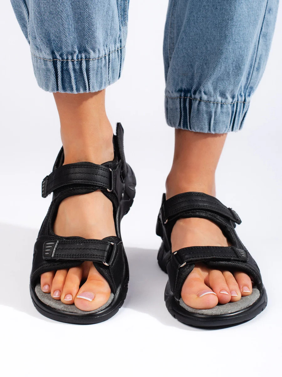 Trendy dámské sandály černé na plochém podpatku