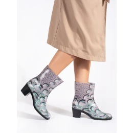 Trendy dámské vícebarevné gumáky na širokém podpatku