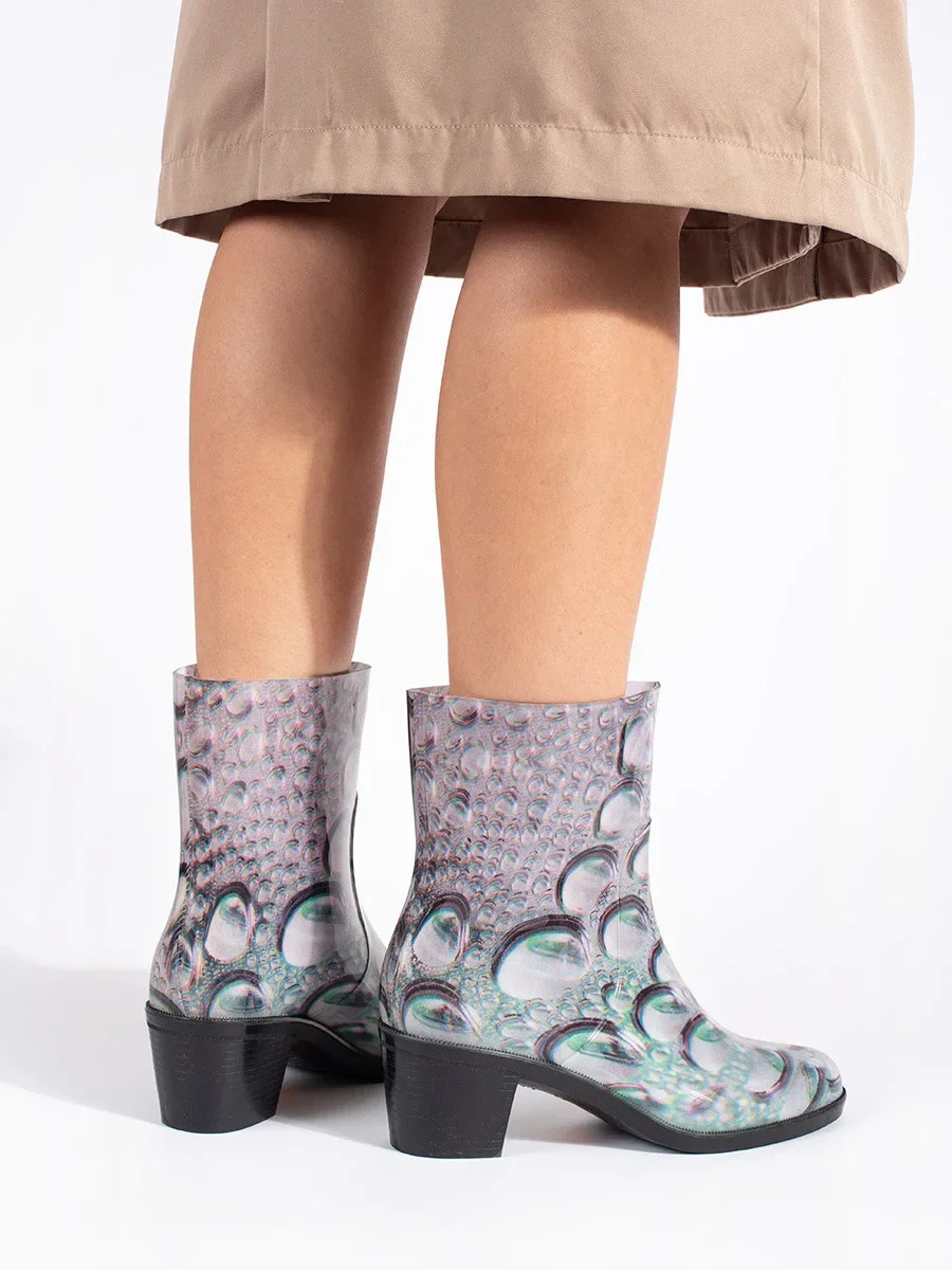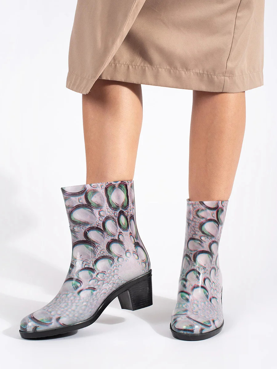 Trendy dámské vícebarevné gumáky na širokém podpatku