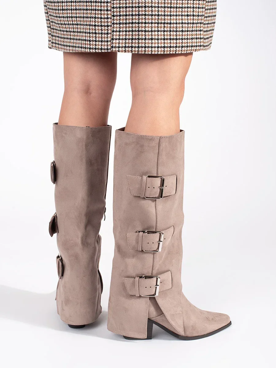 Přidání recenze k Trendy hnědé dámské kozačky na širokém podpatku
