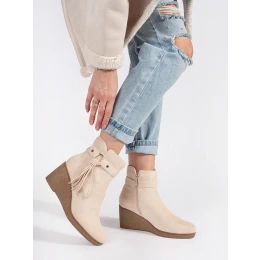 Trendy Jasnobeżowy dámské kotníčkové boty na klínku