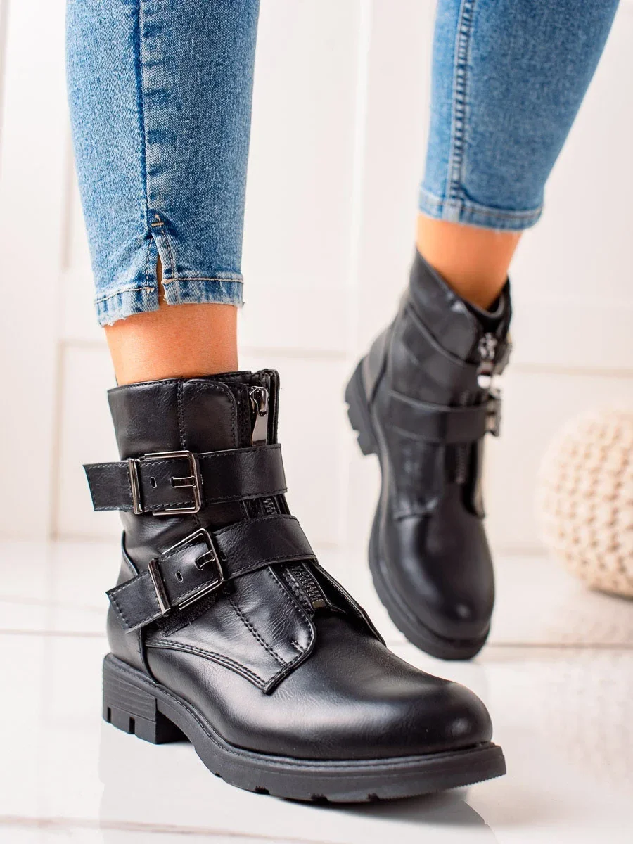 Trendy kotníčkové boty dámské černé na plochém podpatku