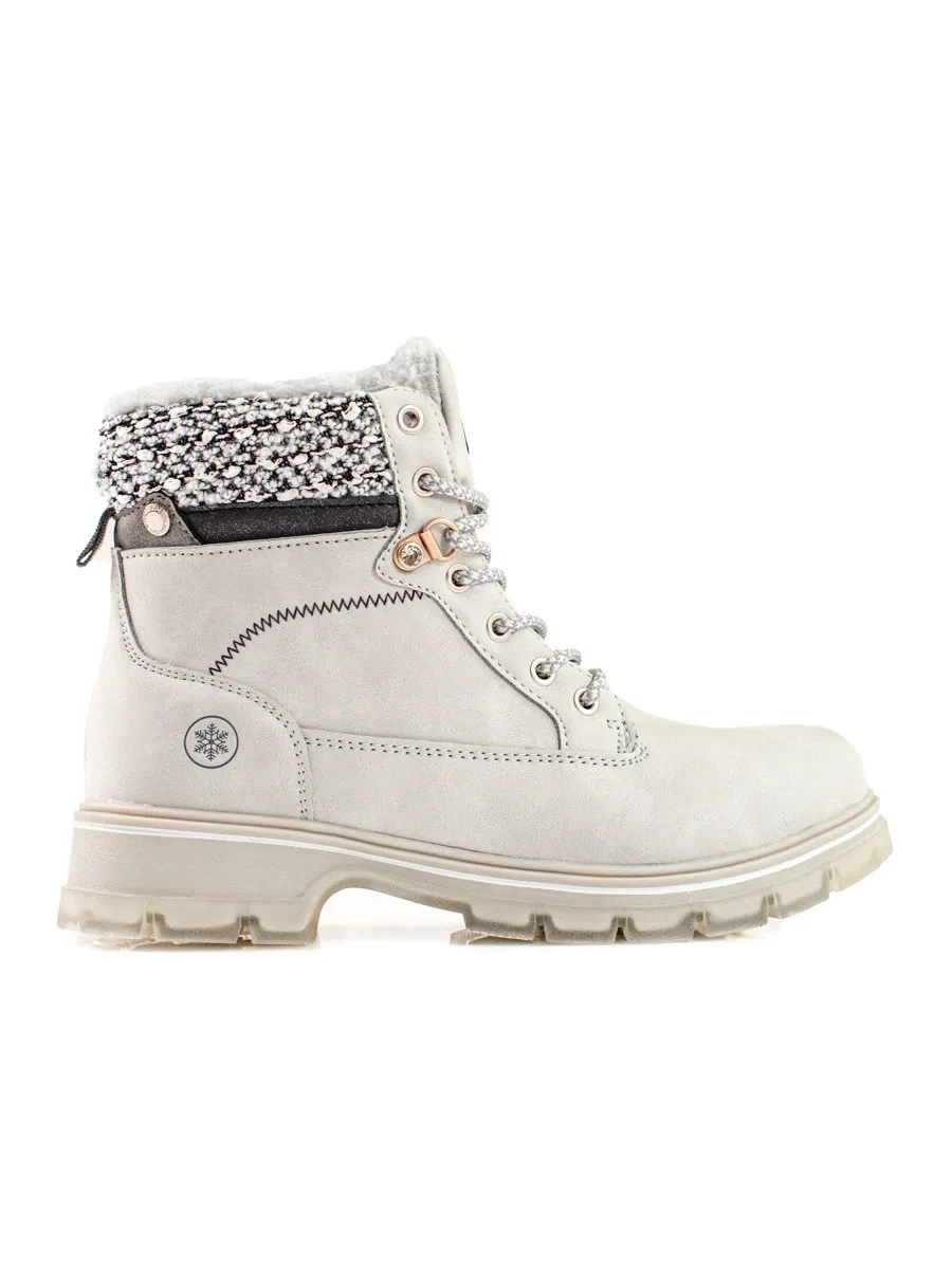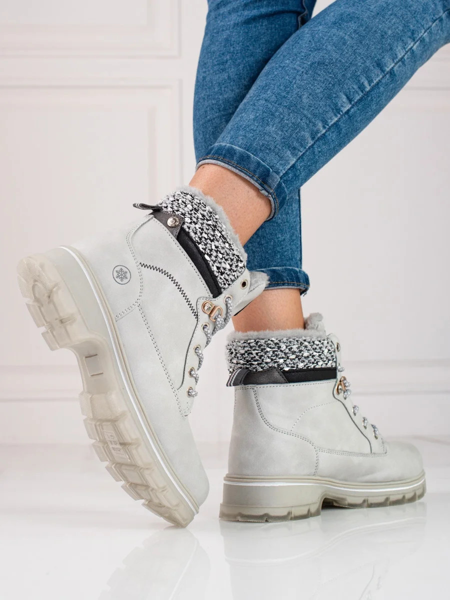 Trendy kotníčkové boty dámské šedo-stříbrné na plochém podpatku
