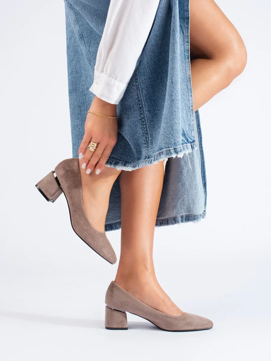 Přidání recenze k Trendy lodičky dámské hnědé na širokém podpatku