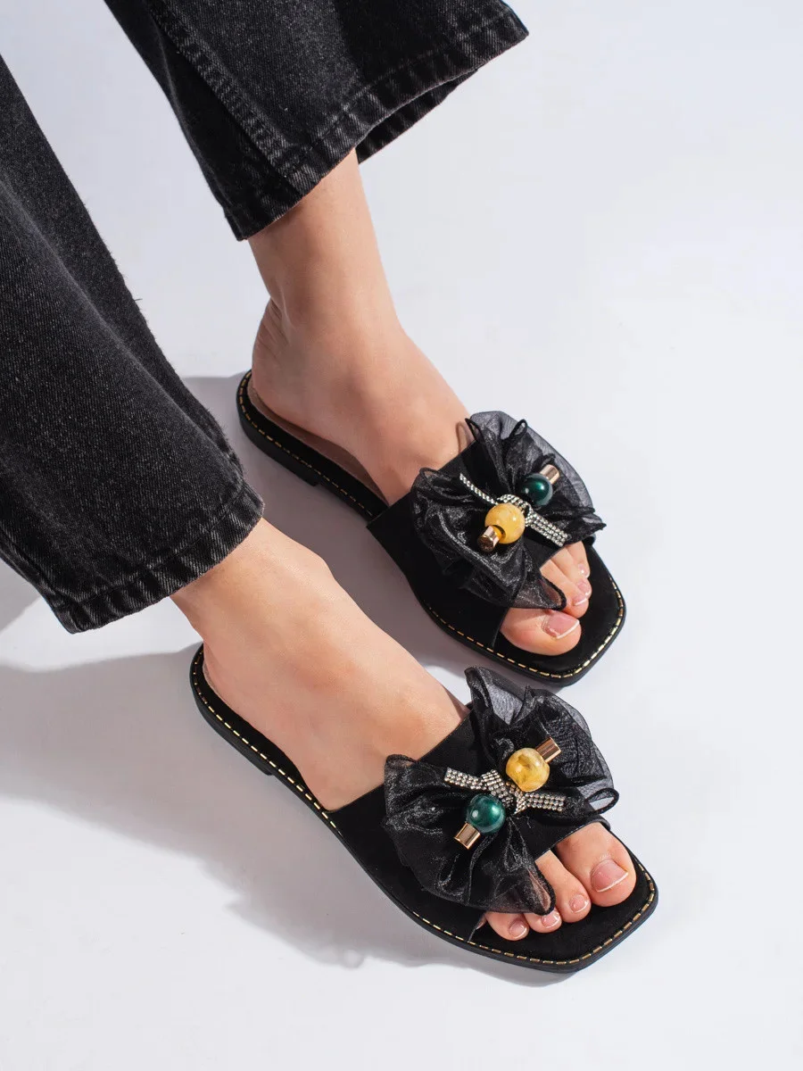 Přidání recenze k Trendy nazouváky dámské černé na plochém podpatku