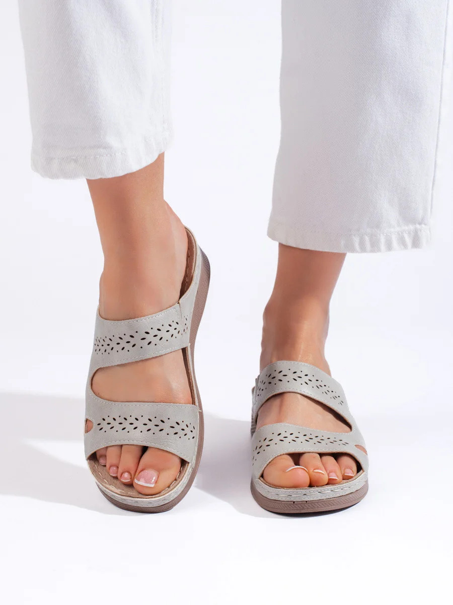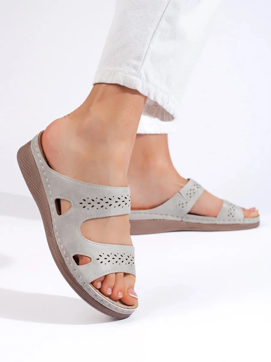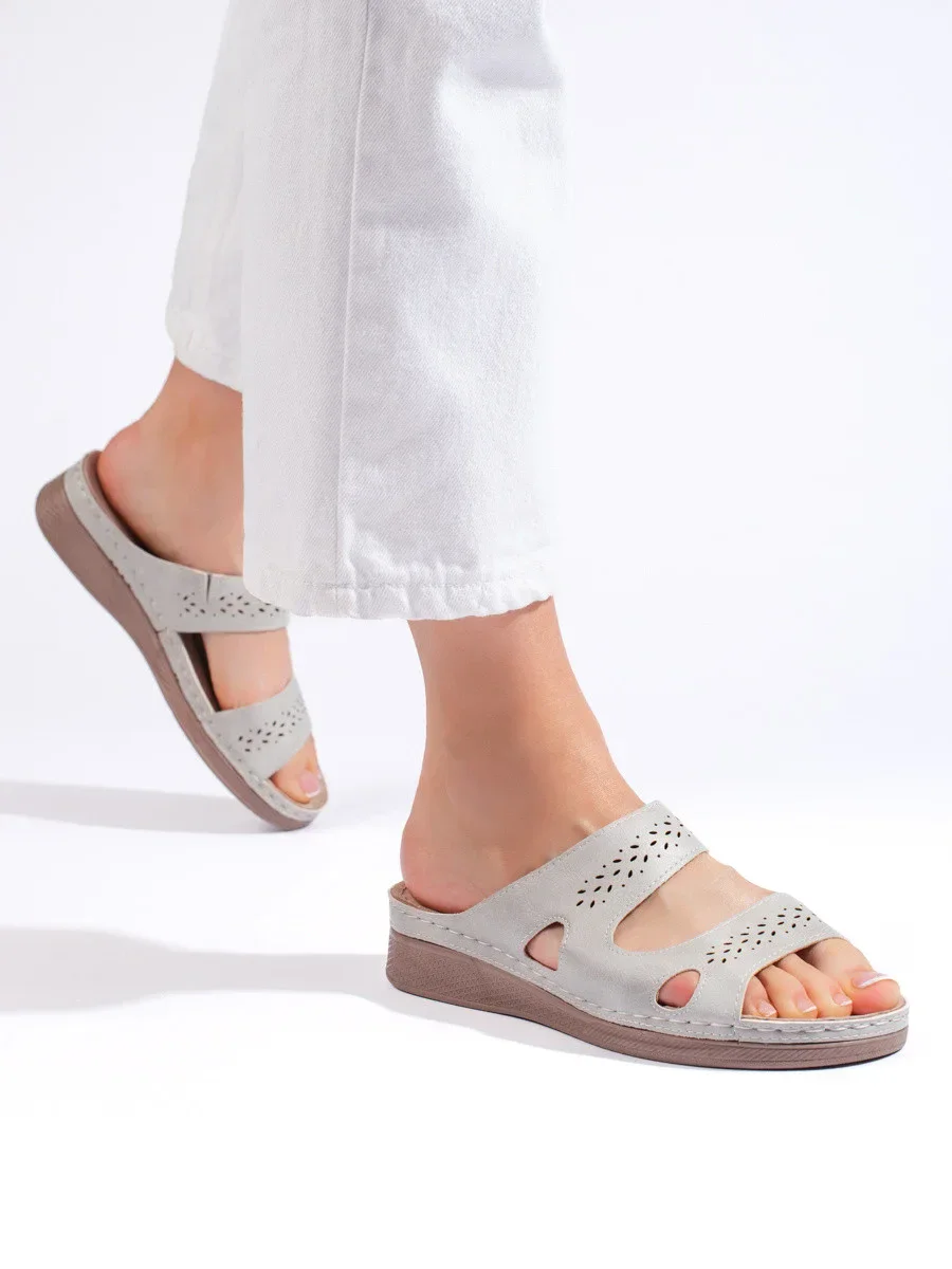 Přidání recenze k Trendy nazouváky dámské šedo-stříbrné na plochém podpatku