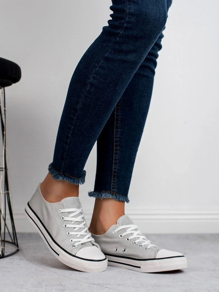 Trendy šedo-stříbrné tenisky dámské bez podpatku