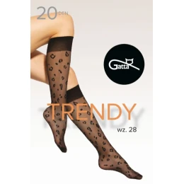 Podkolanówki Gatta Trendy wz. 28 to stylowy dodatek, który doda Twoim stylizacjom charakteru i lekkości. Wykonane z delikatnej, elastycznej przędzy o grubości 20 den, wyróżniają się efektownym, panterkowym wzorem inspirowanym aktualnymi trendami mody. Dzięki połączeniu poliamidu i elastilu idealnie dopasowują się do nogi, zapewniając komfort i trwałość. Transparentna struktura sprawia, że nogi wyglądają smukło i elegancko. Doskonałe do sukienek, spódnic i eleganckich butów – dla kobiet, które lubią łączyć klasę z odrobiną drapieżnego stylu.