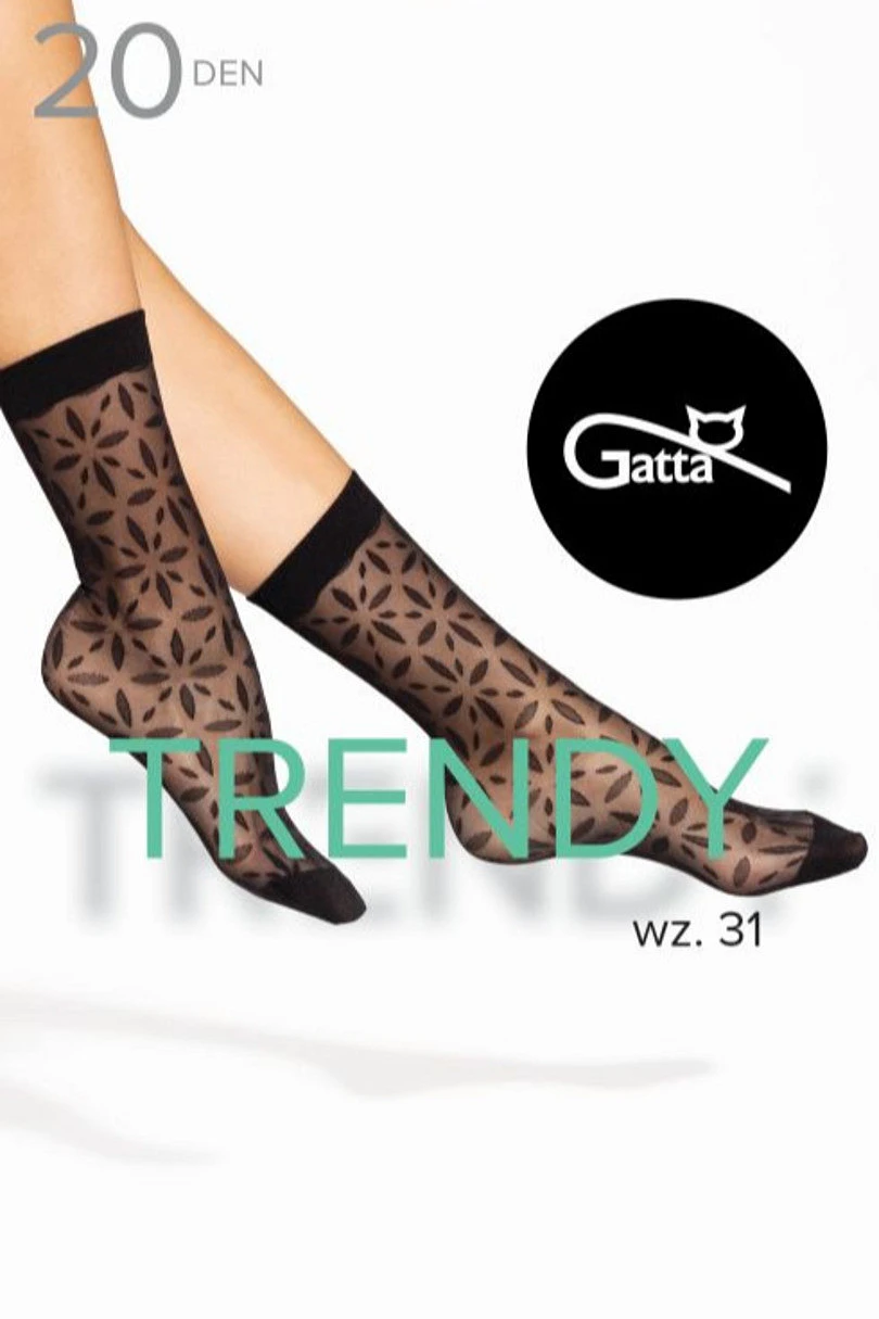 Vzorované dámské ponožky Gatta Trendyline Socks 31 20 DEN jsou ideální volbou pro ženy, které ocení módní doplňky a pohodlí při nošení. Originální vzor dodává nohám lehkost a moderní styl a díky černé barvě se model hodí do mnoha kombinací - od ležérních až po elegantní. Složení na bázi polyamidu a elastanu zaručuje pružnost, odolnost a pohodlí při nošení. Jsou skvělým doplňkem každodenního šatníku i pro zvláštní příležitosti.