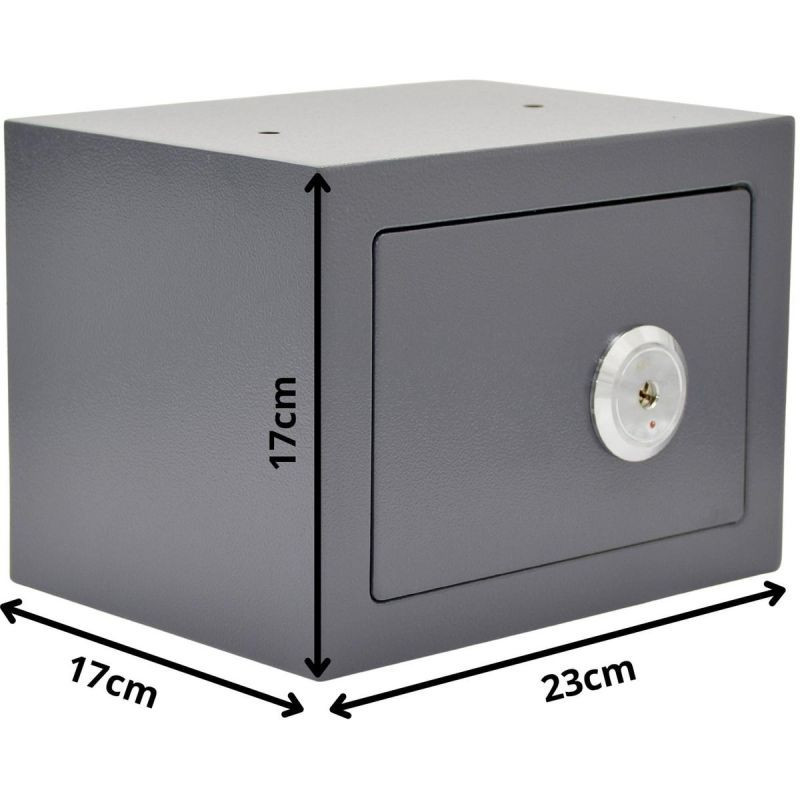 Díky kompaktním rozměrům 23x17x17 cm lze trezor snadno ukrýt ve skříni, zásuvce, výklenku nebo na polici a zajistit tak vyšší bezpečnost. Jeho kompaktní tvar umožňuje optimální využití prostoru a zároveň poskytuje dostatečnou kapacitu pro uložení cenností.